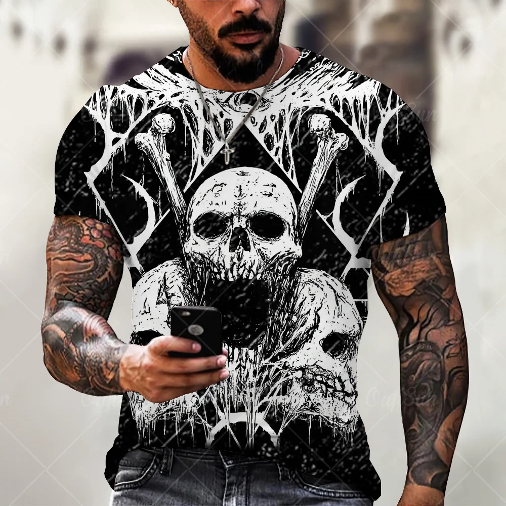 Футболка мужская оверсайз с коротким рукавом, Повседневная рубашка с принтом черепа, уличная одежда в стиле хип-хоп, топ с 3D принтом, лето 2021