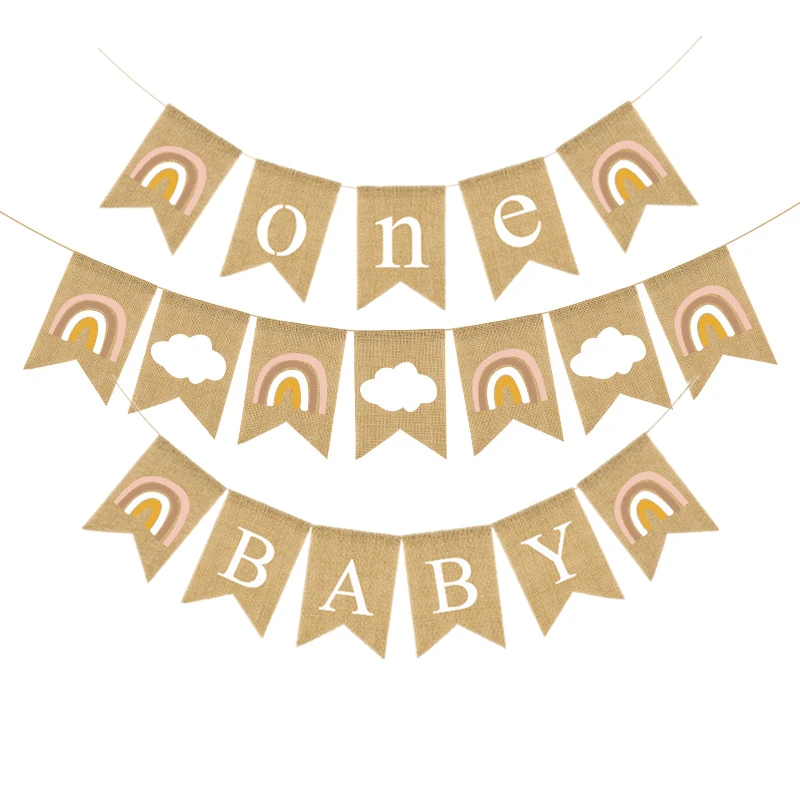 Баннер Ins для детского первого дня рождения, высокий стул, баннер, баннер из мешковины, Лесной богемный бохо, радужная вечеринка, один ребенок, дикий один