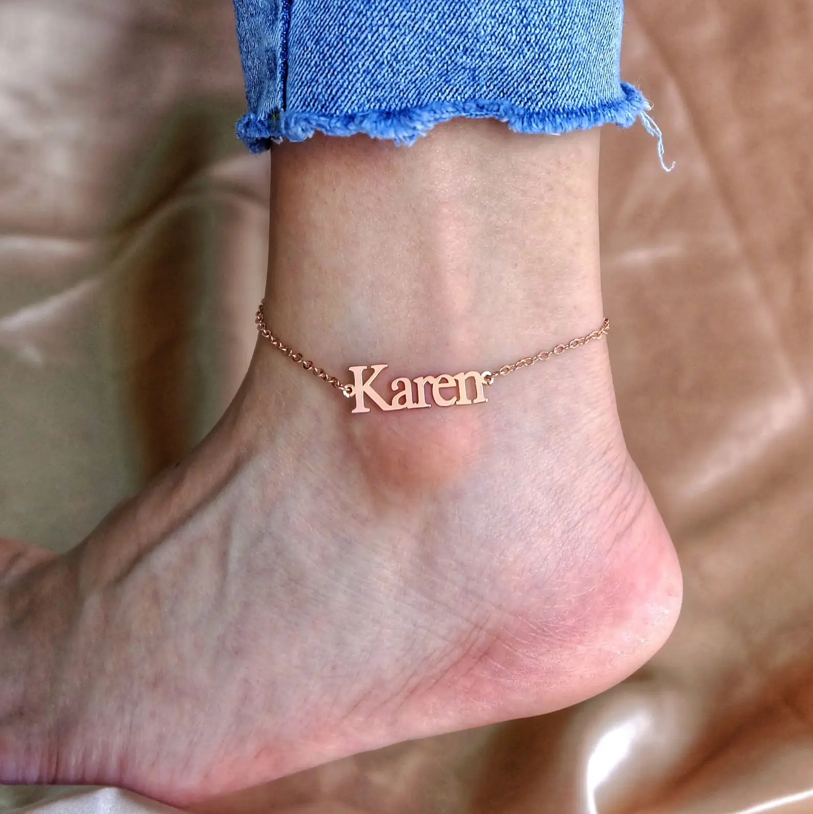 Ножной браслет с именем для женщин, персонализированная цепочка на ногу из нержавеющей стали в богемном стиле, Пляжная бижутерия, подарок на день Святого Валентина