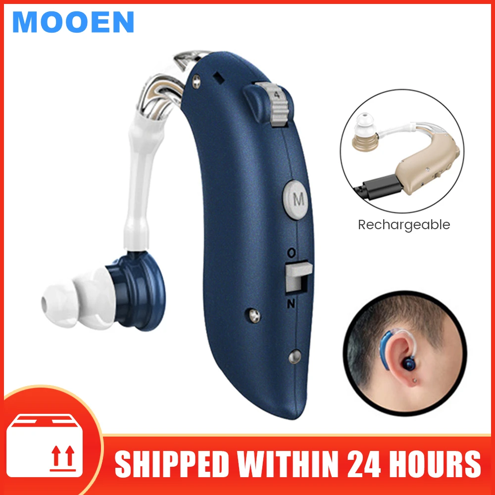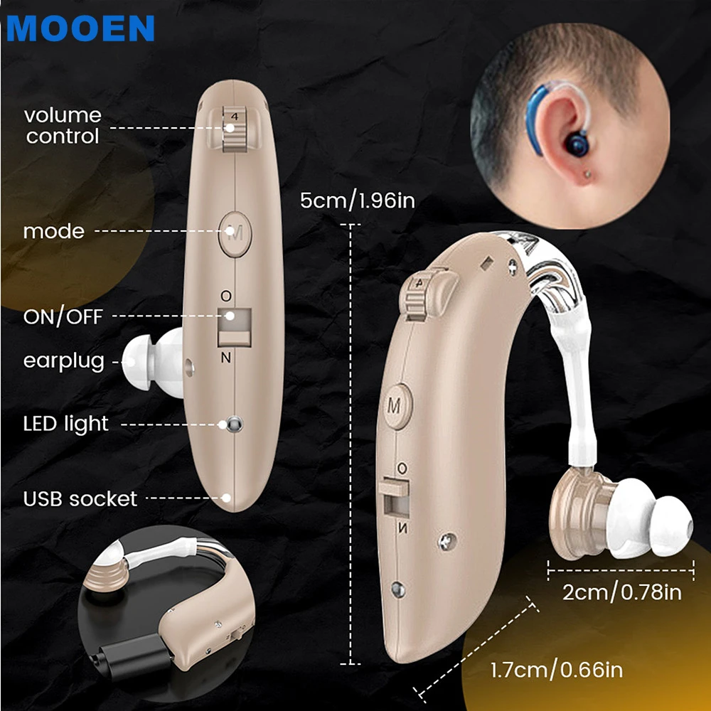 Мини-слуховые аппараты BTE, усилитель звука, перезаряжаемый цифрово...