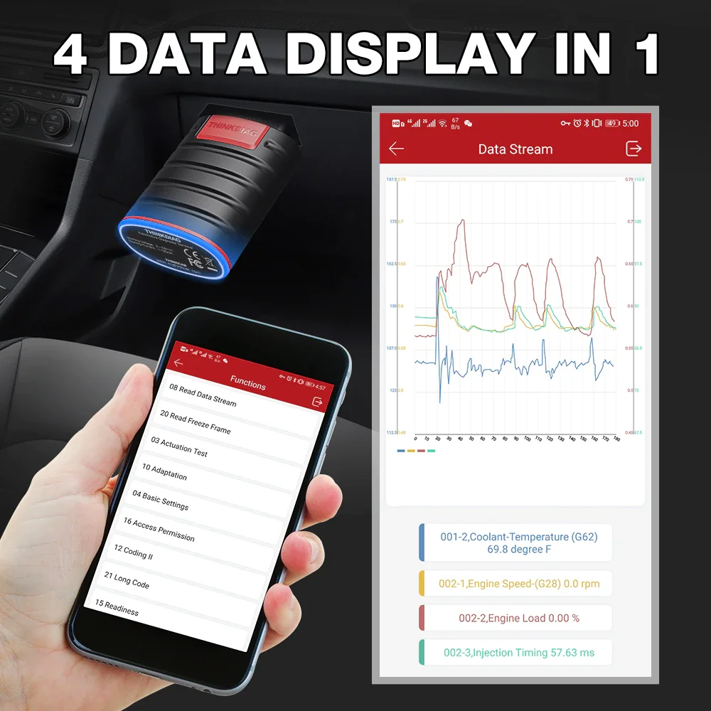 Thinkdiag будет читать прямые данные транспортного средства, и представить по графику. Дополнительное сочетание нескольких данных.