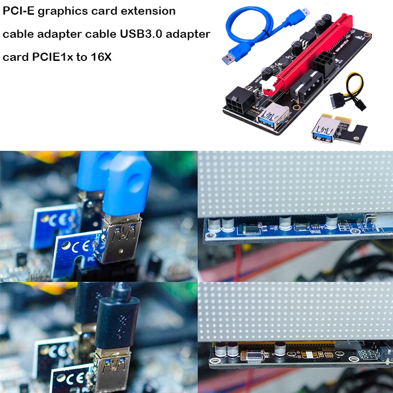 1x7 порт USB3.0 Riser Card для майнингаИли1x7 порт USB3.0 Riser Card для майнинга7 x PCI-E 16X подъемная плата7 x адаптер PCI-E 1X7 x SATA 15-pin до 6-pin Мощность кабель7 x Кабель USB 3,0 Пожалуйста, проверьте фотографии для получения более подробной информации.