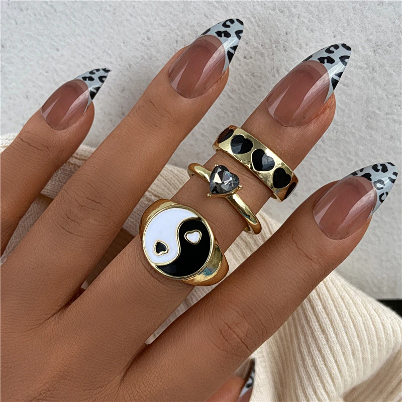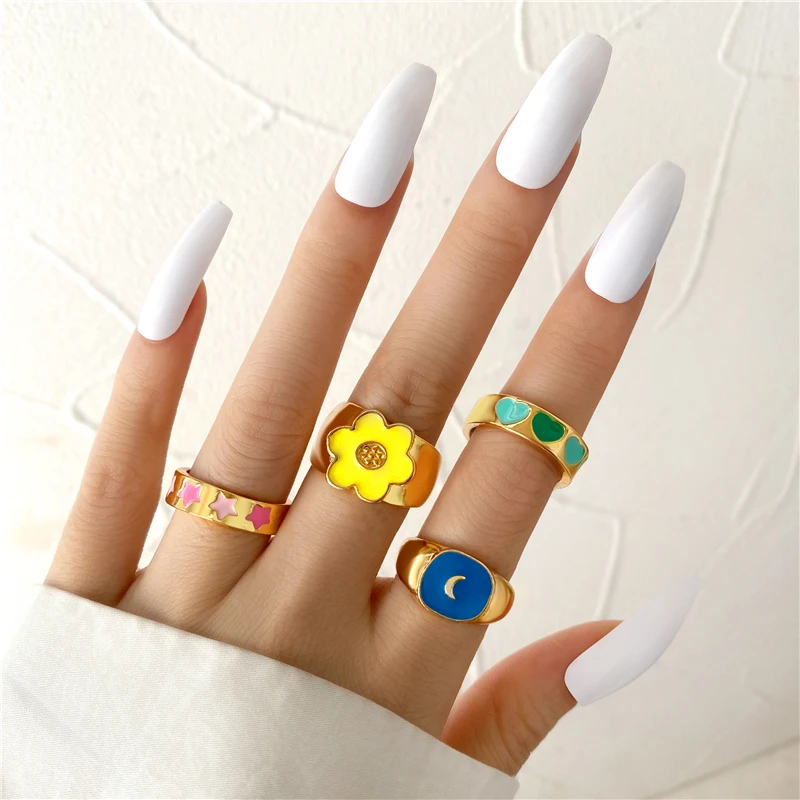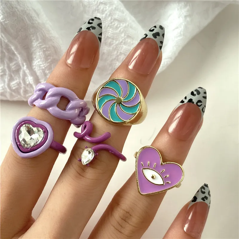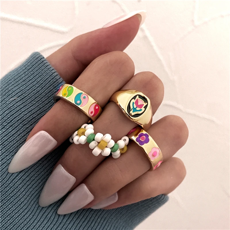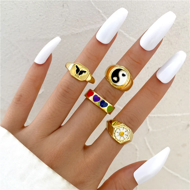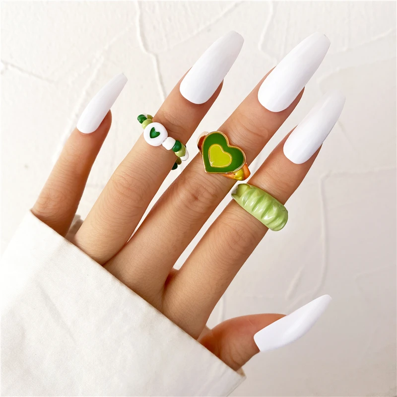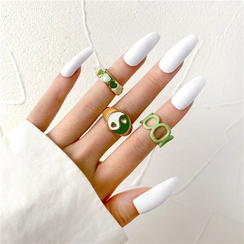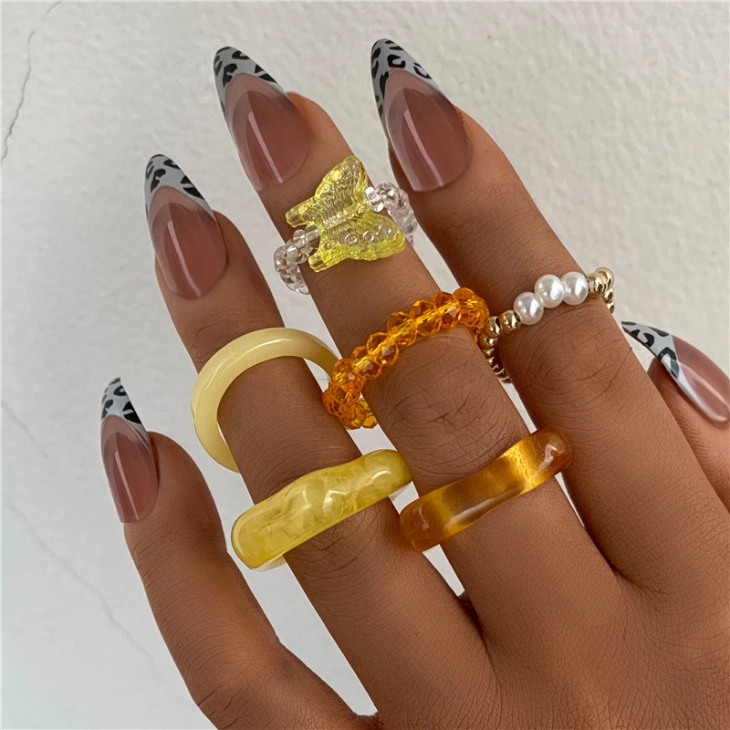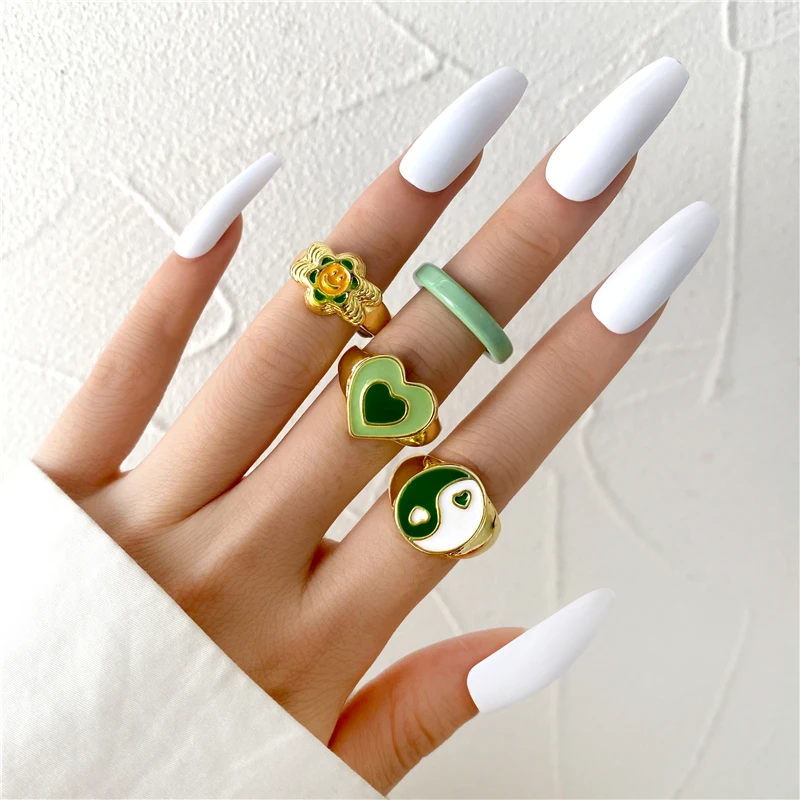 Комплект женских колец в богемном стиле с зеленым кристаллом и бабочкой