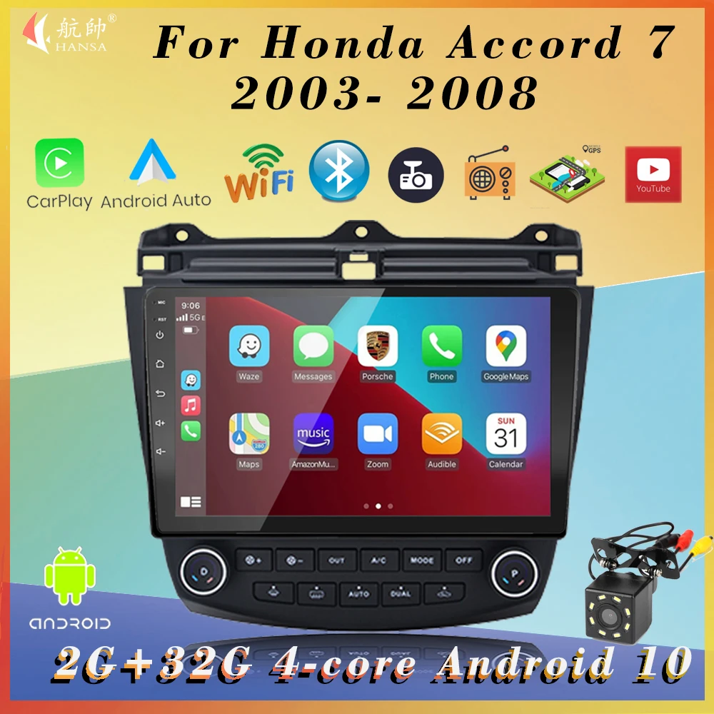 Автомагнитола 2DIN, мультимедийный плеер Android с экраном Carplay, Автомобильный GPS bluetooth для Honda Accord 7 2003 2004 2005 2006-2008
