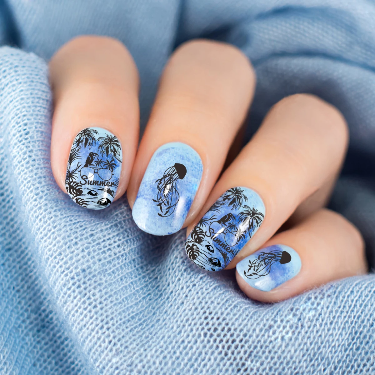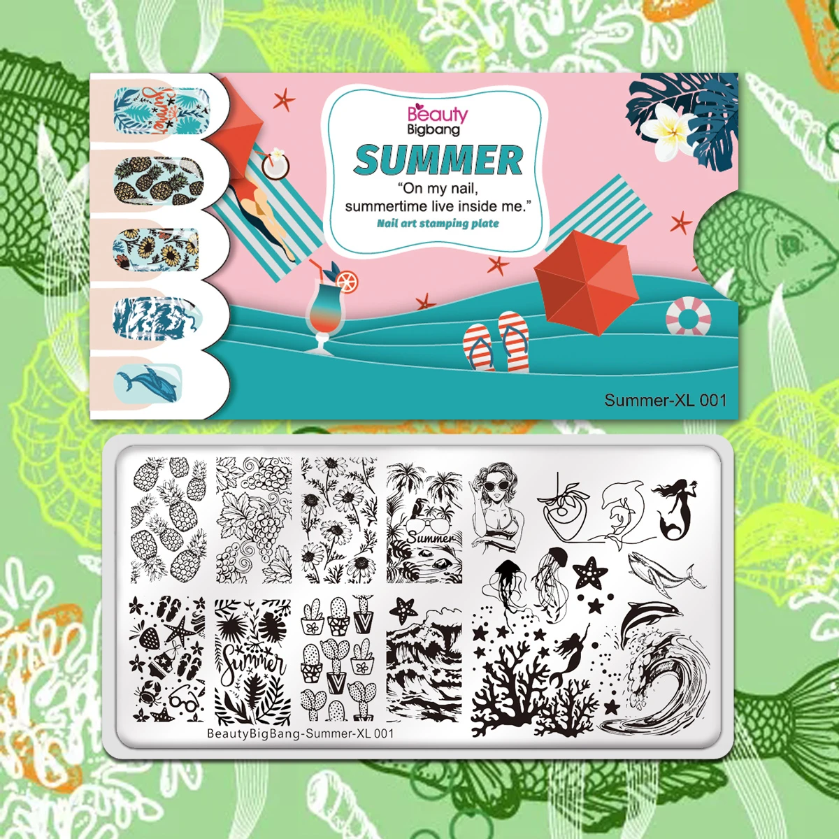 Красота Bigbang ногтей штамповки пластины новый летний стиль волна кит дельфин тема из нержавеющей стали шаблон формы для дизайна ногтей трафарет
