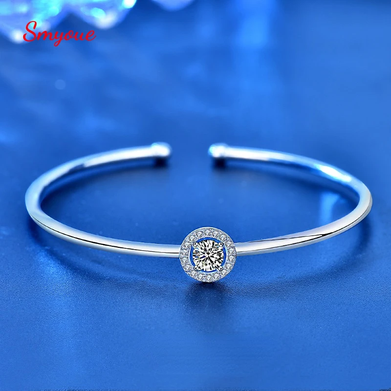 Женский браслет Smyoue, браслет из стерлингового серебра 925 пробы с круглой огранкой и бриллиантами, регулируемый браслет на руку, оптовая продажа