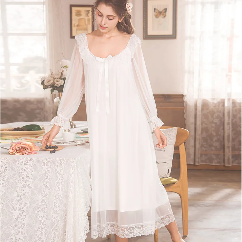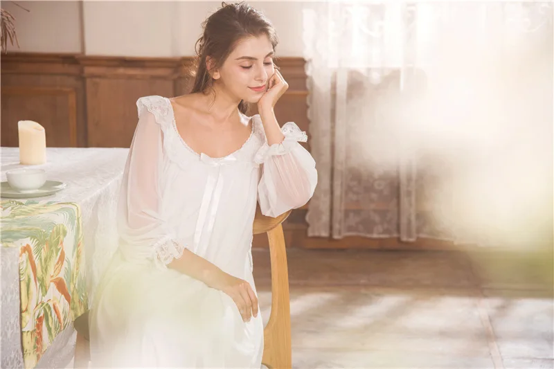Сетчатая винтажная Пижама, Сексуальная кружевная ночная рубашка, летняя модная Пижама, винтажная пижама в стиле принцессы, ночная сорочка из модала, одежда для отдыха