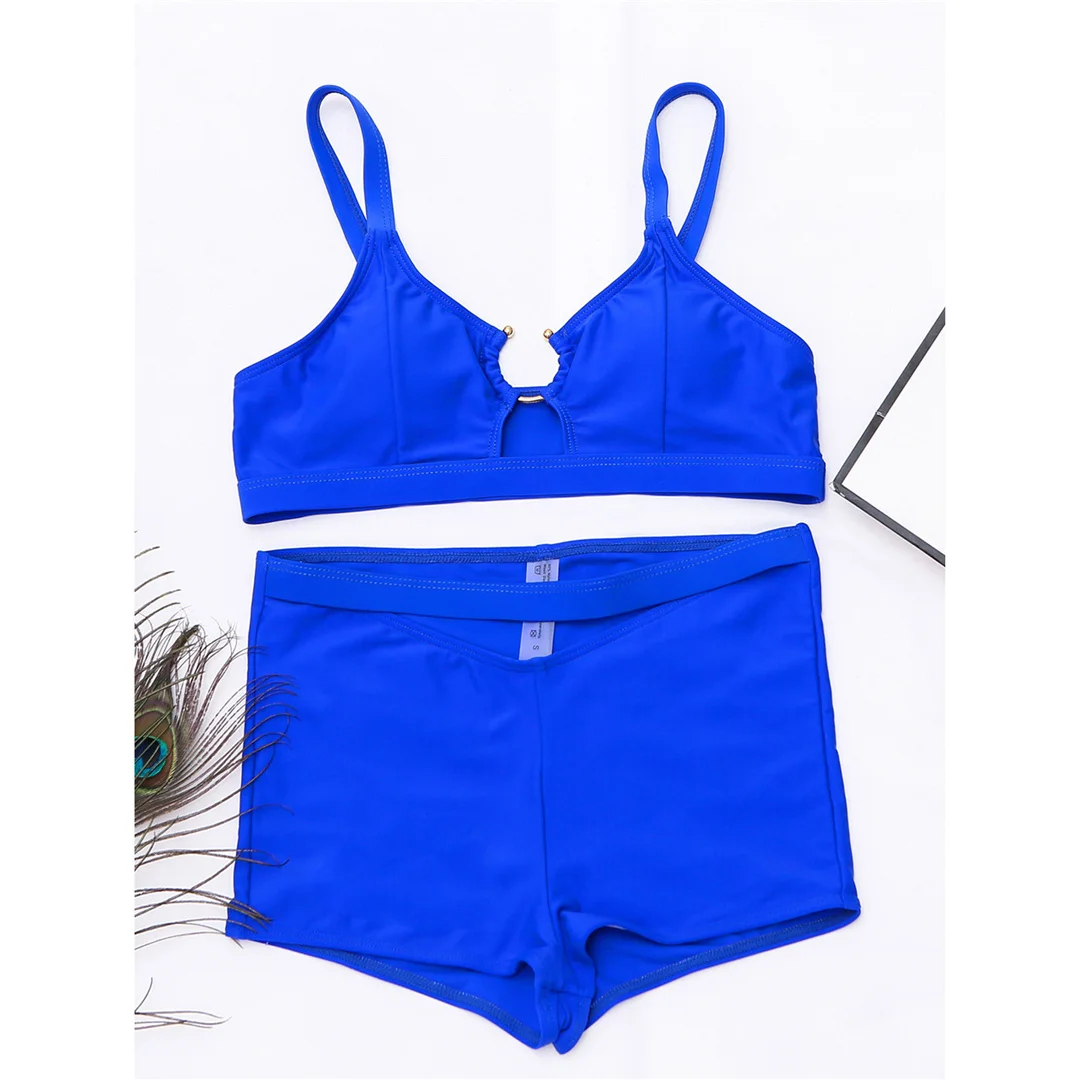 SINO.TREND Шорты с вырезами и высокой талией, женский купальник, комплект бикини из двух предметов, купальный костюм с мягкой подкладкой
