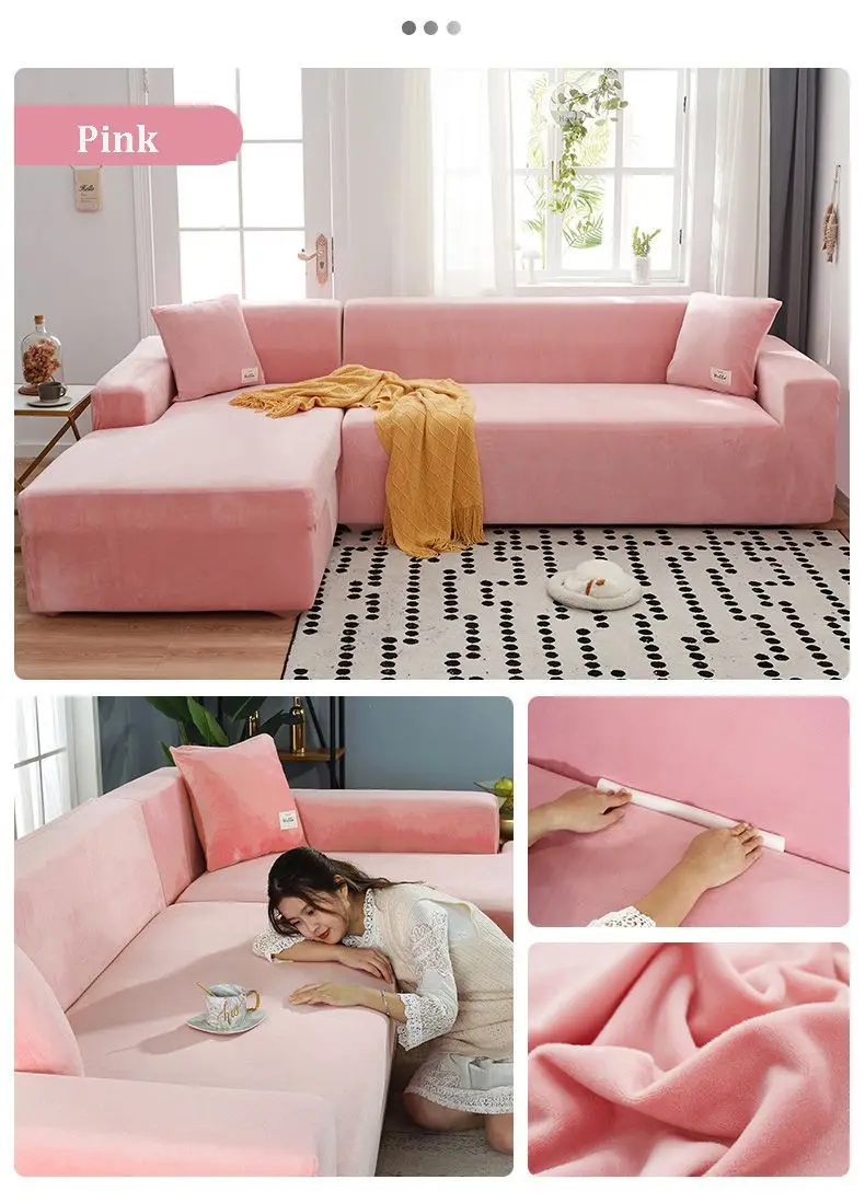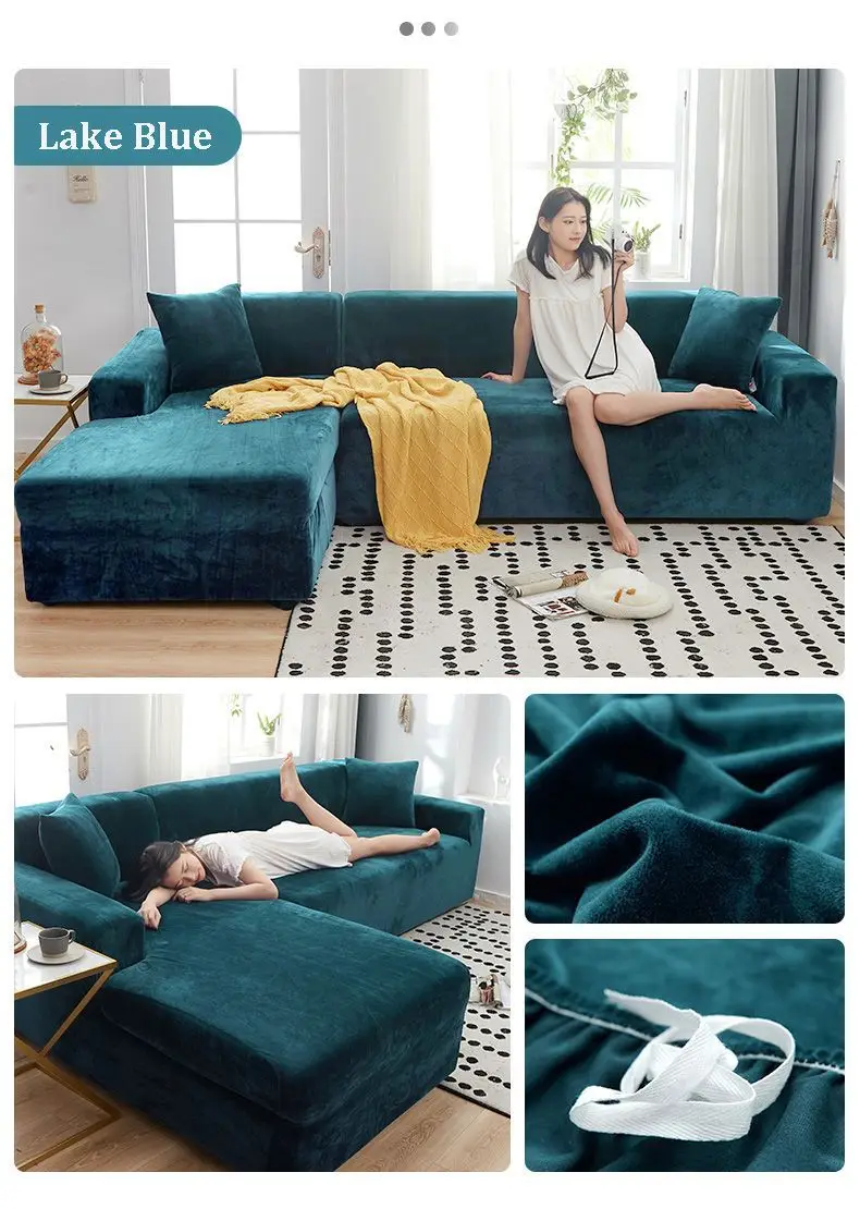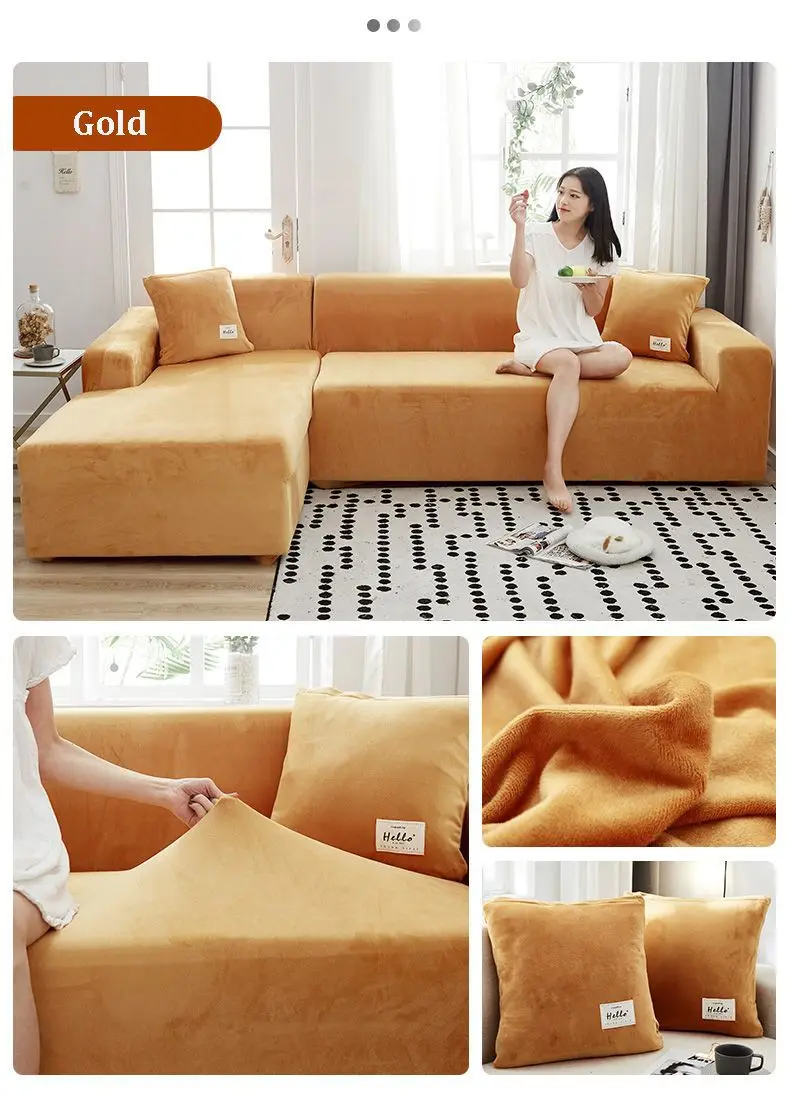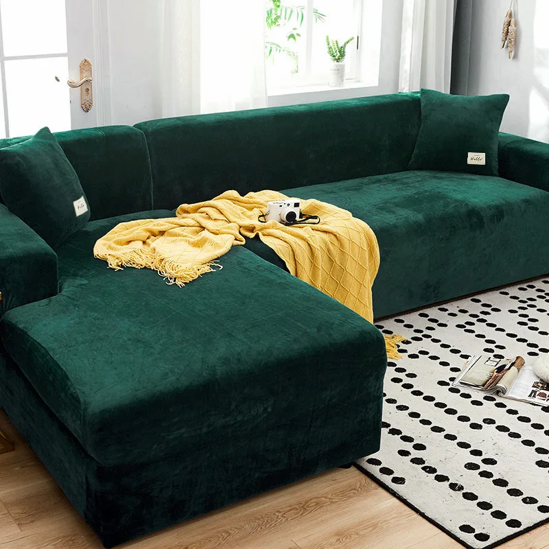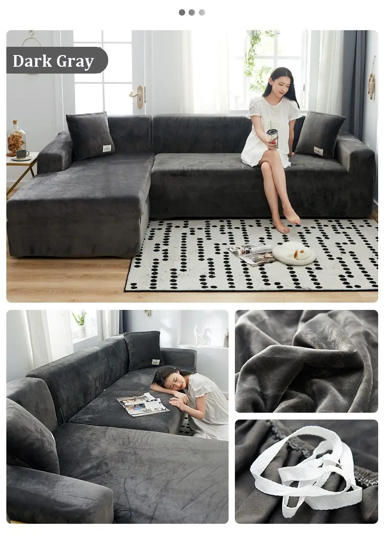 Бархатный плюшевый L-образный диван, Бархатные чехлы для гостиной, ...