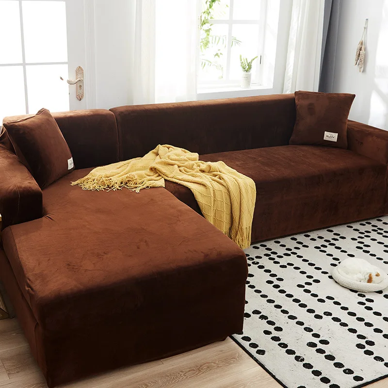 Уютный домашний бархатный растягивающийся L-образный чехол для дивана в гостиной, чехол для дивана, эластичный чехол для 1234-местного дивана