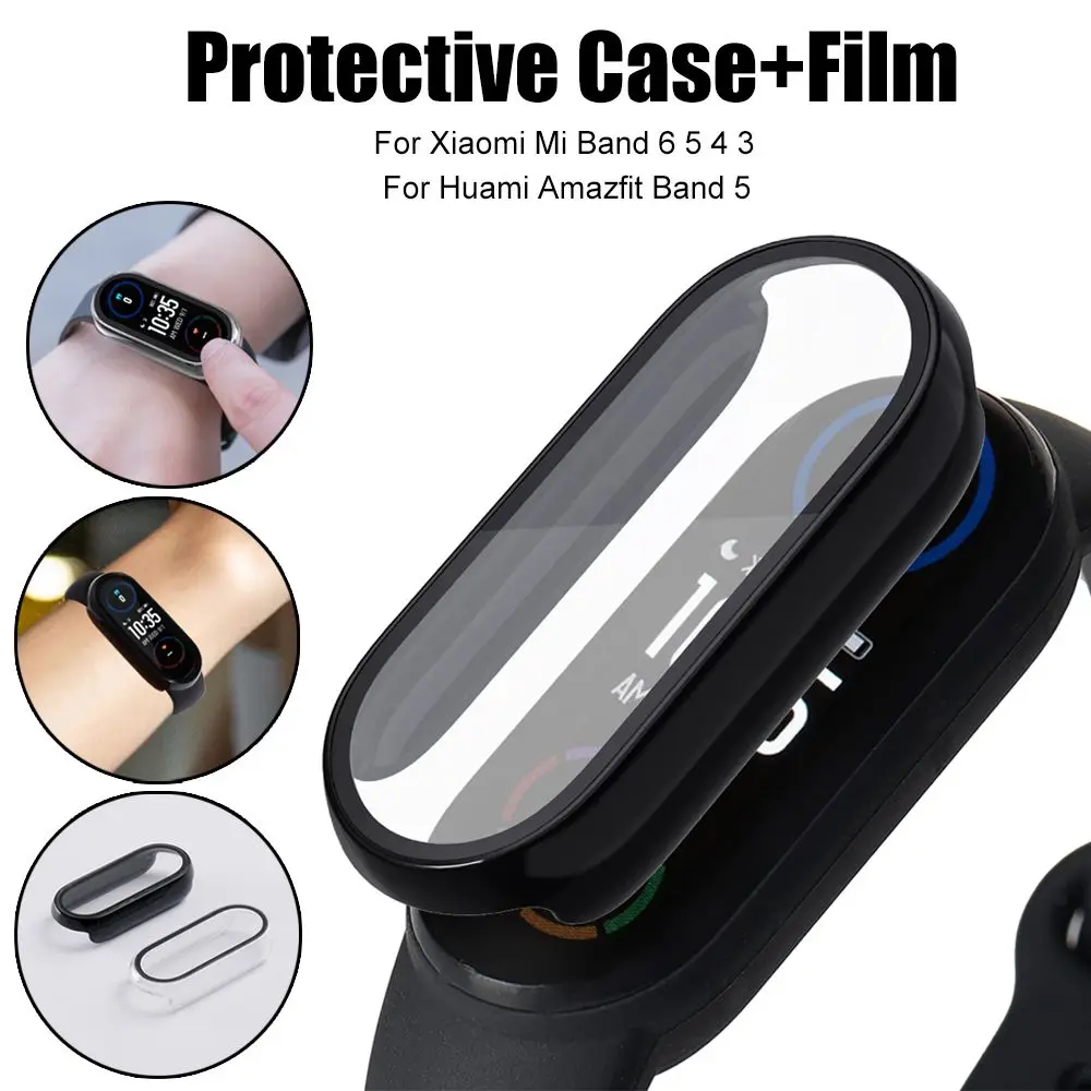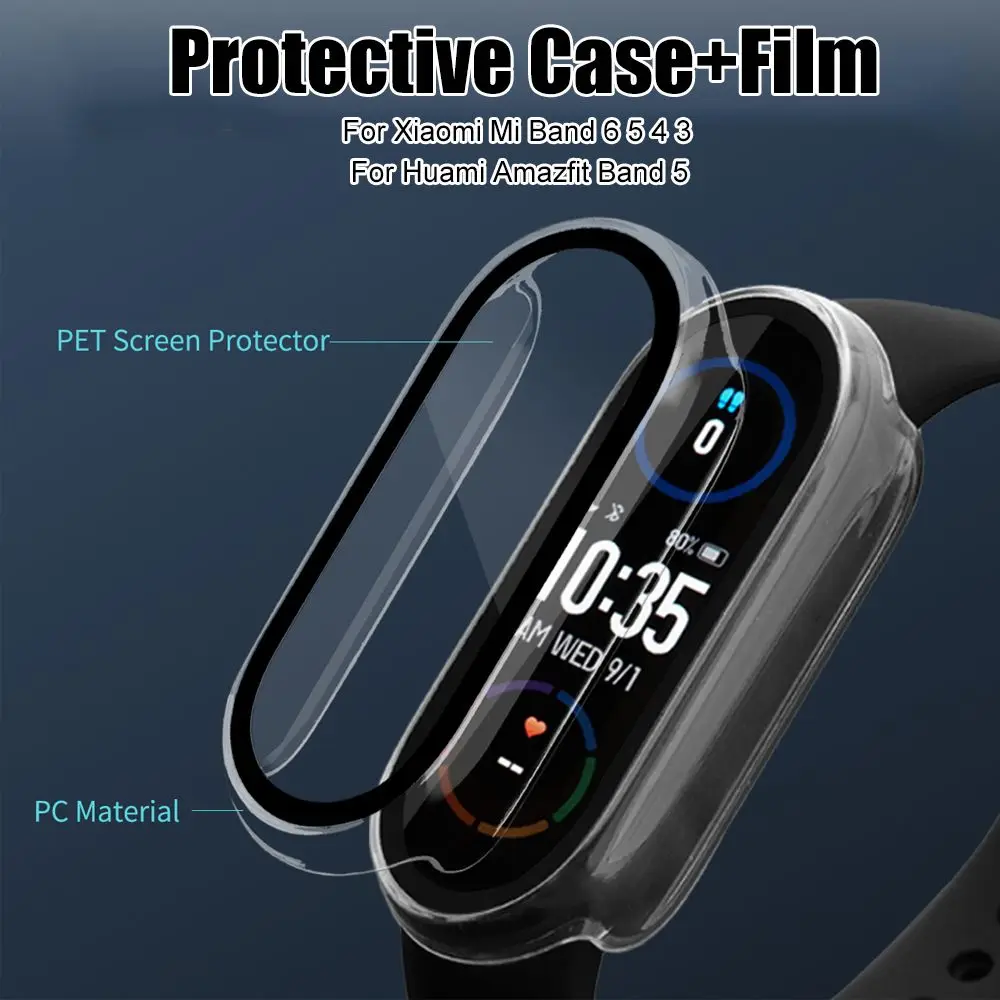 Чехол 2 в 1 + стеклянная пленка для Xiaomi Mi band 4 5 6, Защита экрана для Miband 6 5 NFC, умный ремешок для часов, защитный чехол с полным покрытием