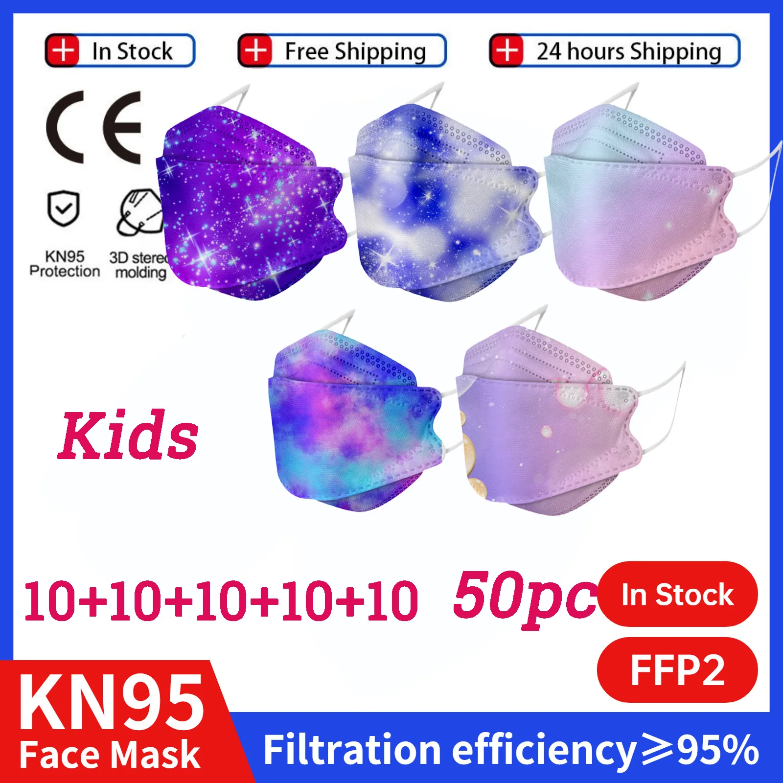 50 шт., разнообразные маски fpp2 для детей, градиентные маски FFP2 CE