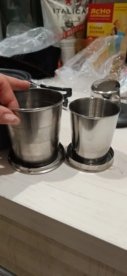 Замечательный продавец, не представляю почему у него так мало заказов ☺️ доставка заказа всего за 5 дней до Краснодара, курьером до дома) посуда замечательная, на фото сравниваю с моим стаканом, с лево моя кружка, с права кружечки продавца, размер хороший, хоть и не большой, можно цеплять за карабин и носить так. Мне пришло все целое. Купила за 1,5 т.р.)