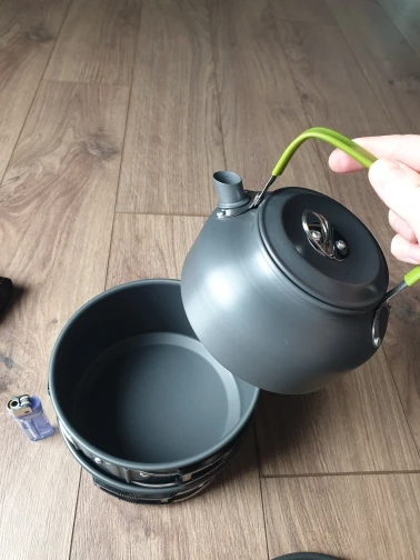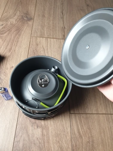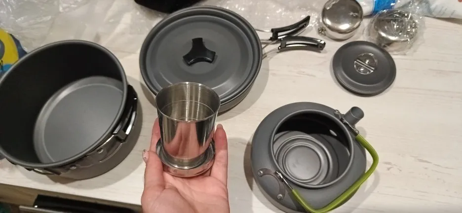 Отличный наборчик. Жене понравился. По мне - компактный, что ещё нужно, много места в багажнике не займет. Чайник махонький на пару стаканов чая) Доставка до Набережных Челнов чуток затянулось, но не более 1,5 недель в итоге. Товар соответствует описанию.