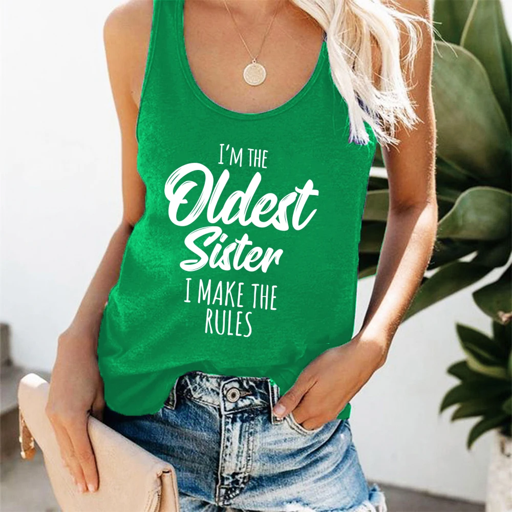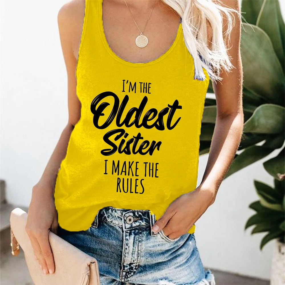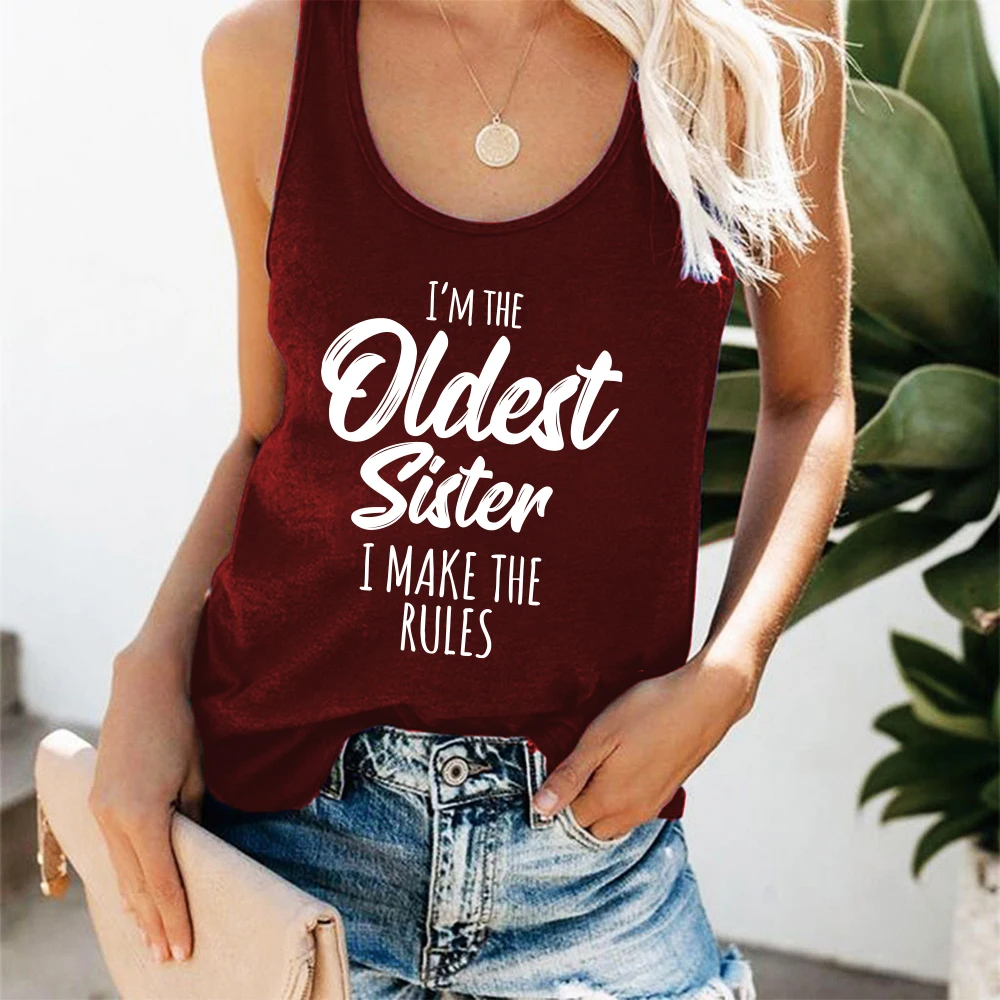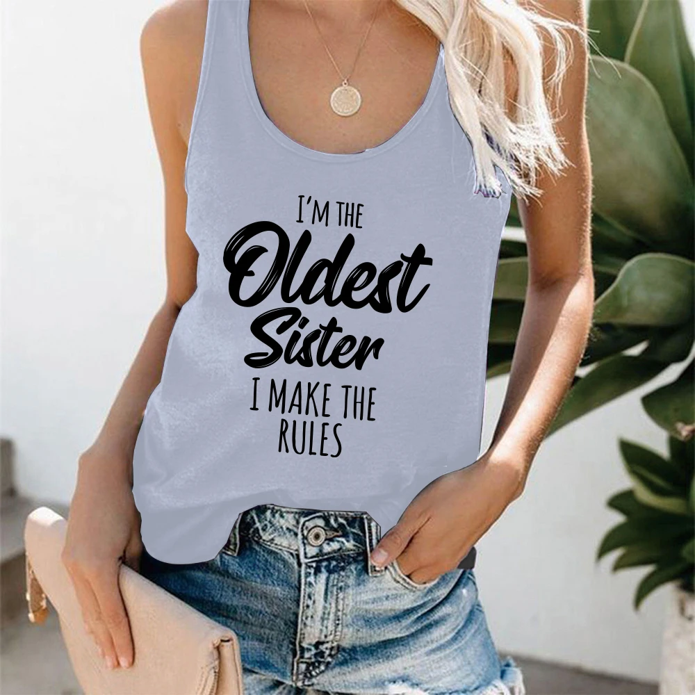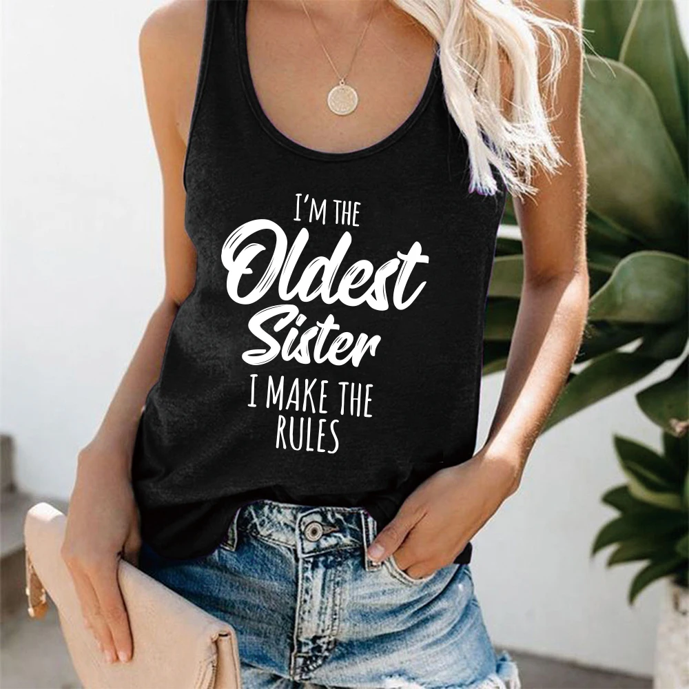 Женская майка с принтом Я самая старшая сестра и надписью I Make The Rules, свободная летняя футболка без рукавов, забавная Дамская уличная одежда, топ, жилет
