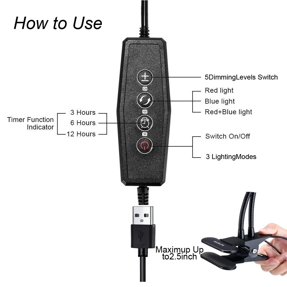 Светодиодный светильник USB для выращивания растений, фитолампа, полный спектр, фитоламп с контролем для растений, саженцев, цветов, домашних палаток