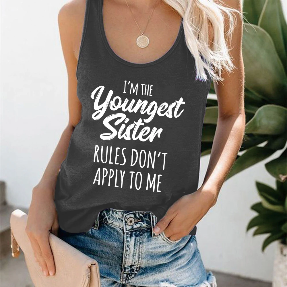 Pattern'm Youngest Sister Rules Don't Apply To Me Print Tank Tops Women