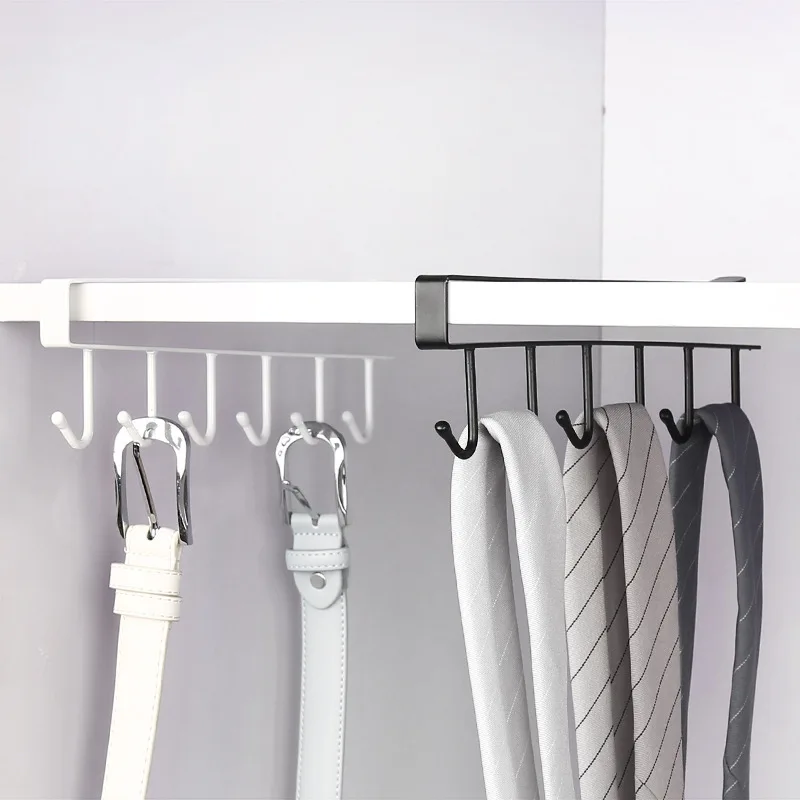 Железная полка для хранения с 6 крючками, металлическая подвесная полка для шкафа, кружек, чашек, органайзер для ванной, кухни, подвесная стойка, держатель