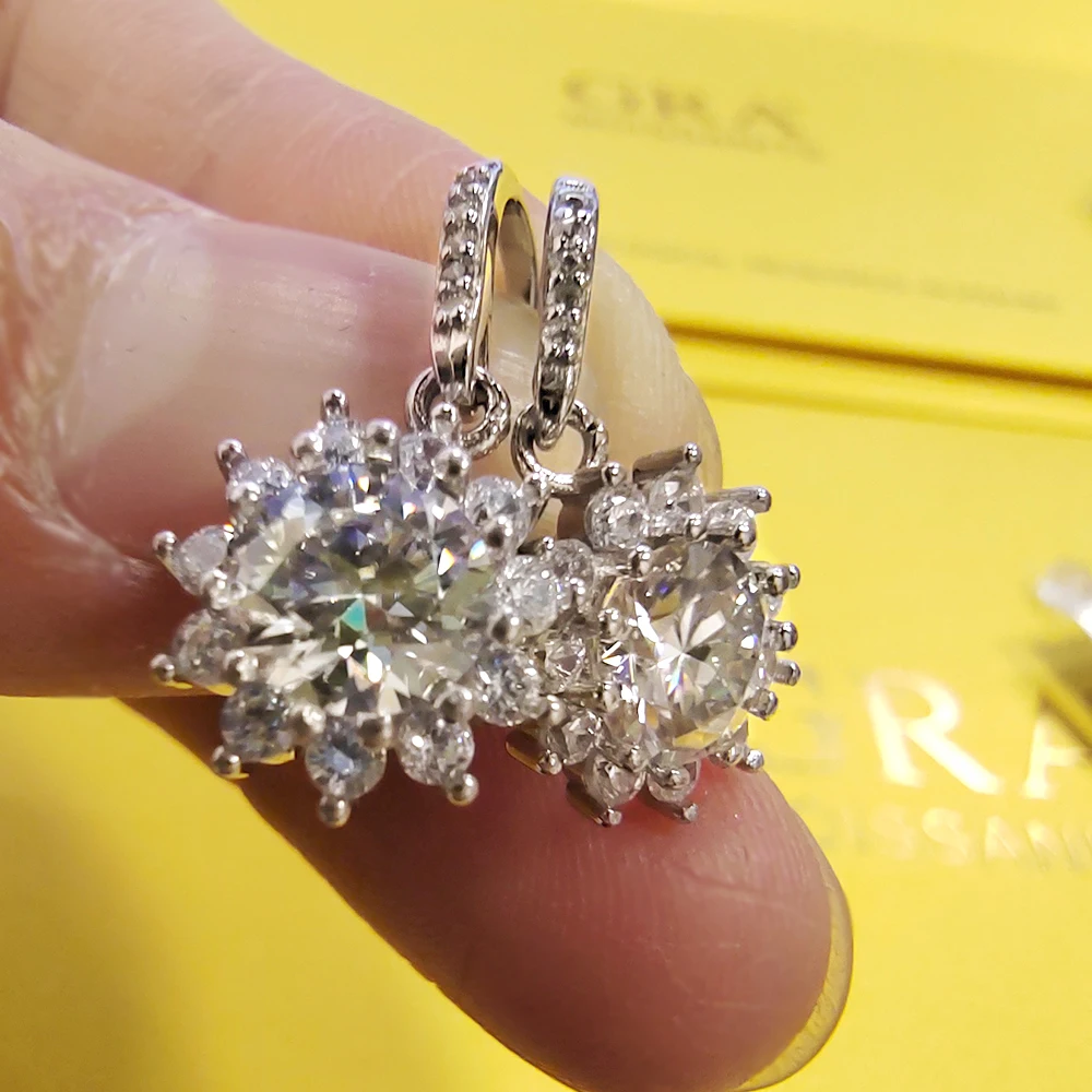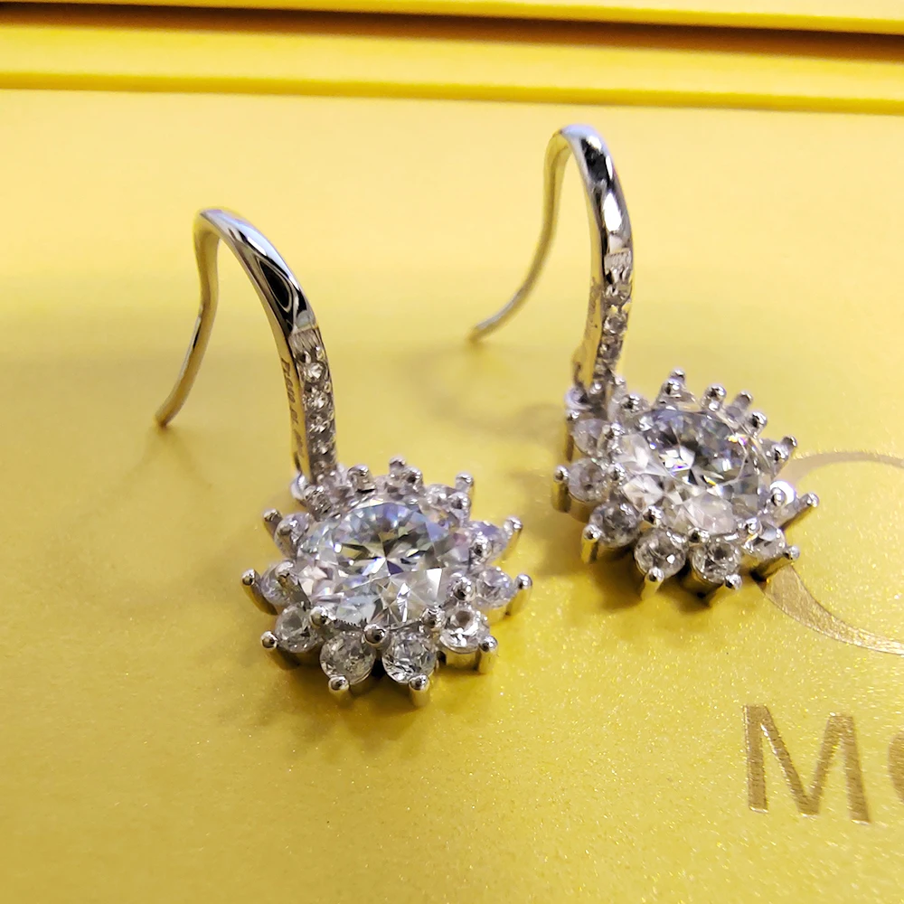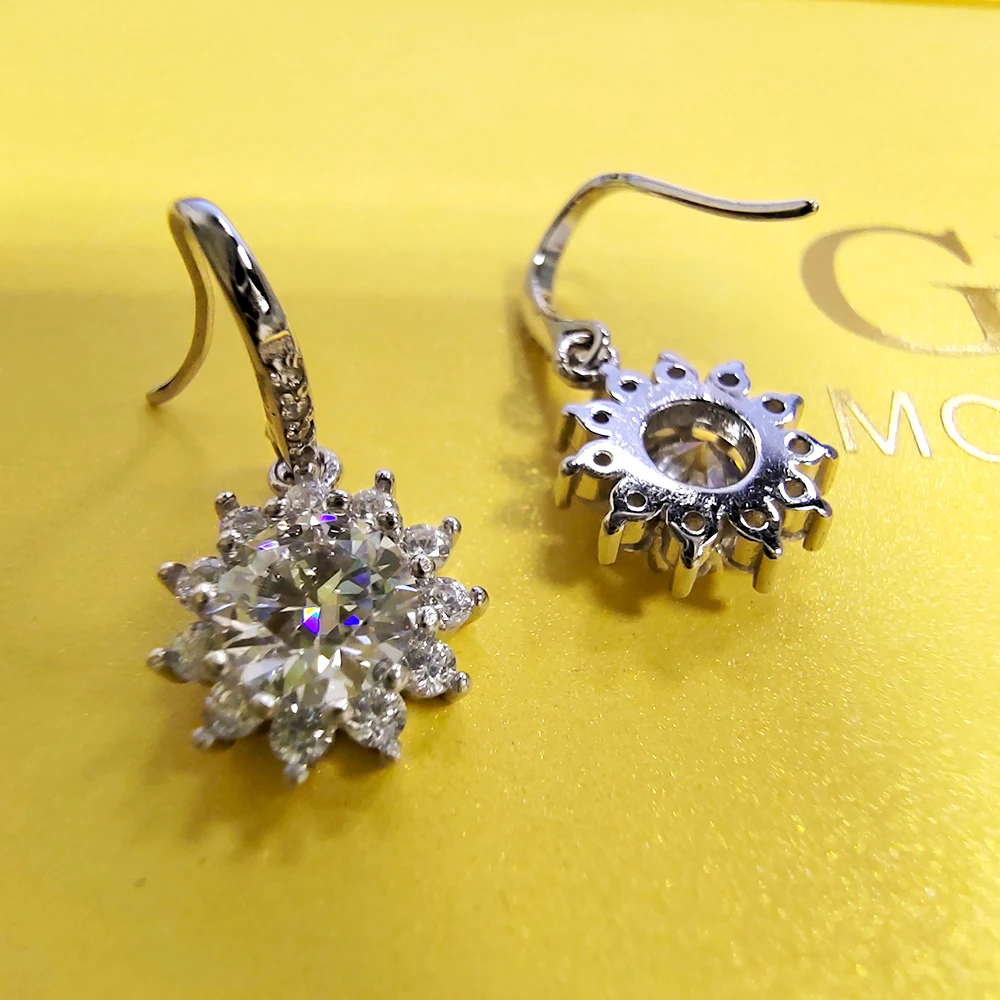 1 + 1CT серьги Moissanite с солнечным цветком для женщин 925 серебряные ювелирные изделия для свадебной вечеринки юбилейный подарок GRA сертификат
