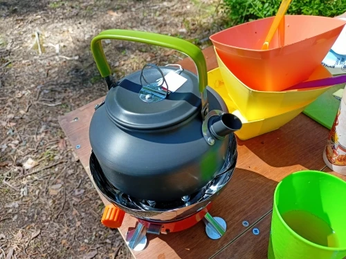малипусенькие чайник только пол заварку, кастрюлька на две три тарелки супа. на двоих на природе самое то