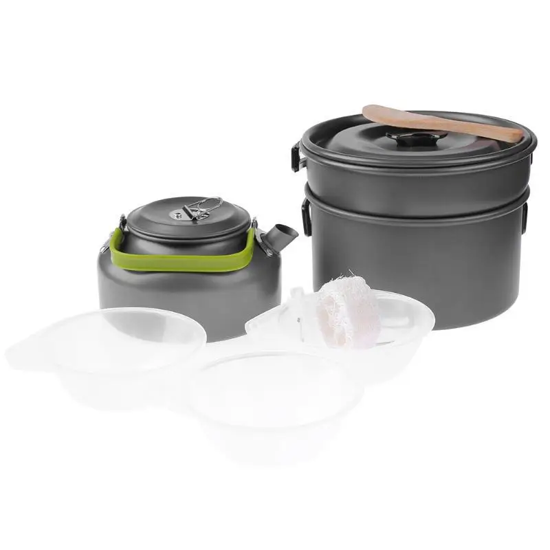 Набор кухонной посуды для кемпинга, алюминиевый антипригарный портативный набор посуды для открытого воздуха, поддон для сковороды, чайник для пешего туризма, барбекю, пикника