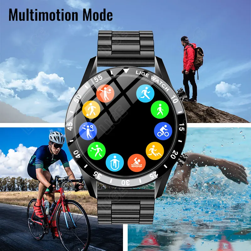 Смарт-часы LIGE мужские со стальным ремешком, сенсорным экраном и Bluetooth