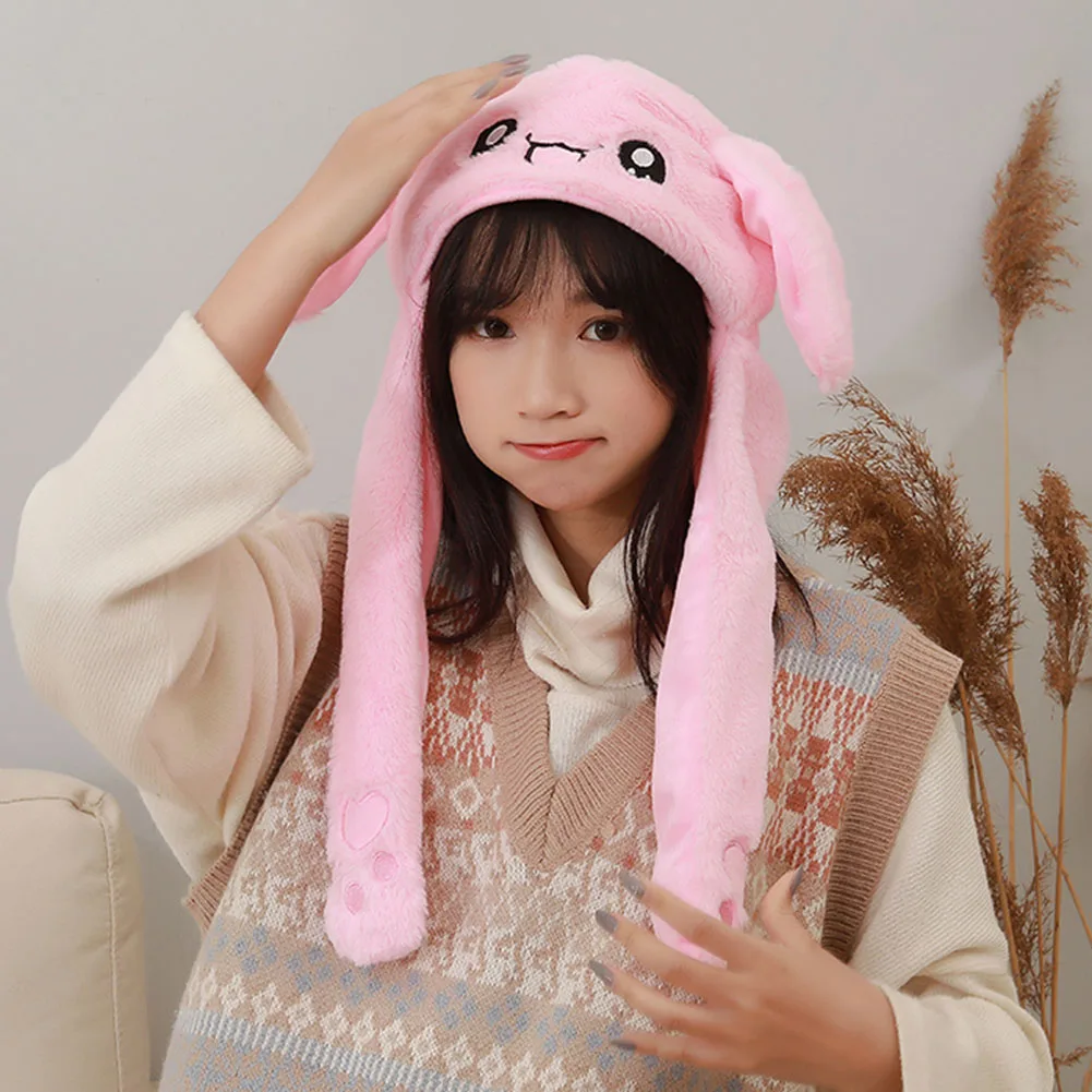 Шапка со светодиодной подсветкой в мультяшном стиле, Шапка-бини, зимние плюшевые движущиеся уши кролика, наушники, Симпатичные игрушечные шапки с кроличьими ушками, реквизит для вечеринки для детей