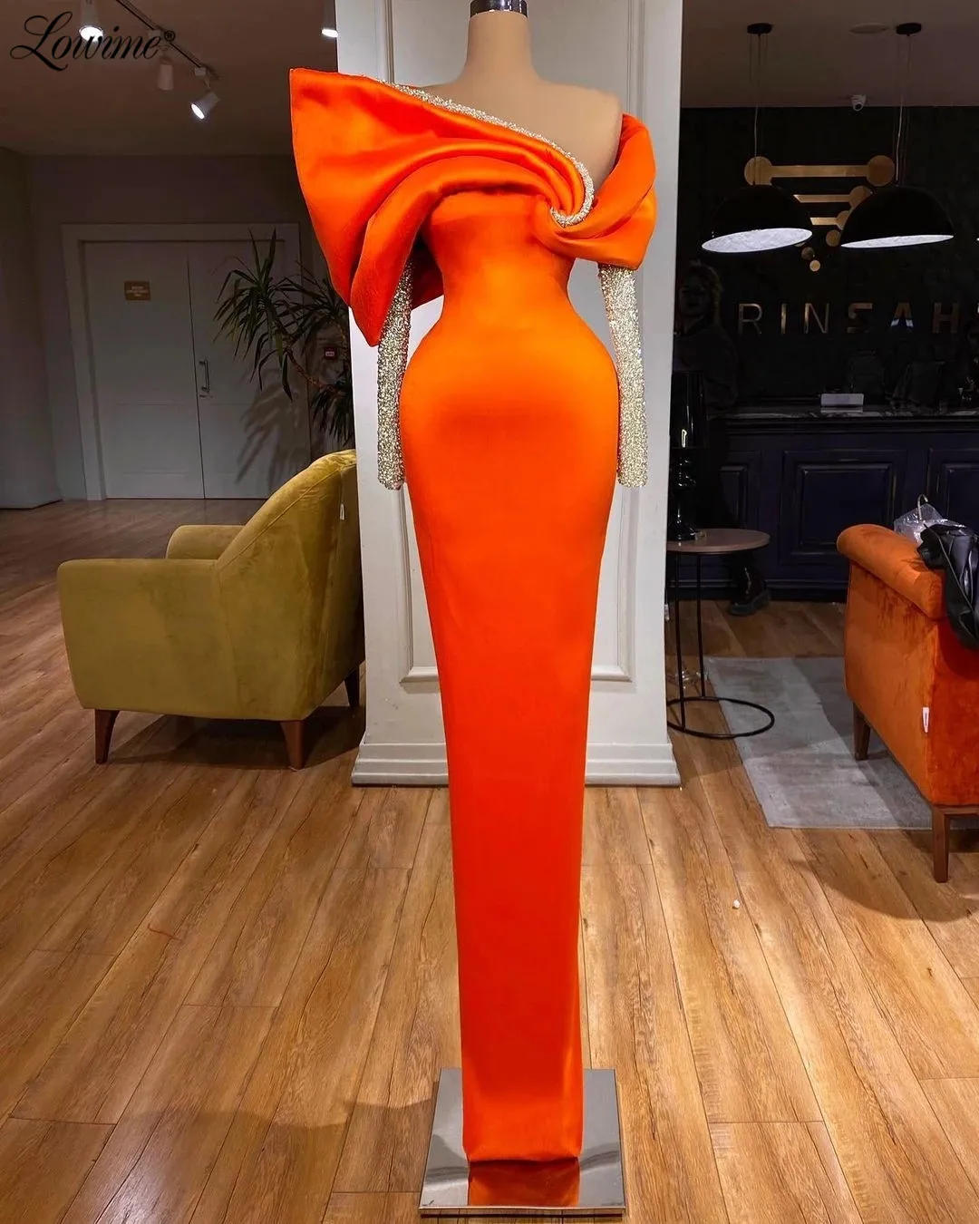 Женское вечернее платье-русалка, оранжевое элегантное платье с длин...