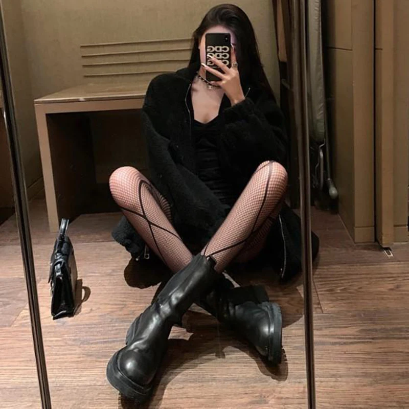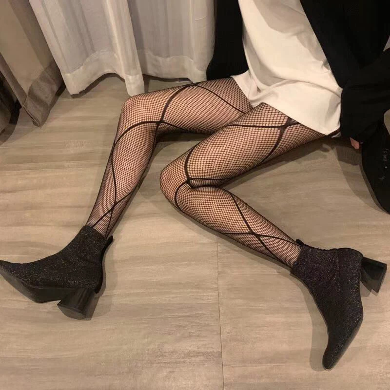 Сексуальные колготки Ins Dark Series, ажурные сетчатые чулки с большим поперечным разрезом, длинные колготки для рыбалки, колготки для девочек