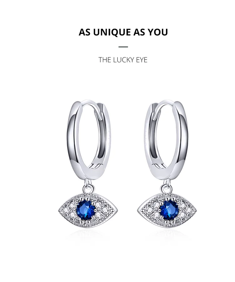 Название: Счастливый глаз Тип изделия: Серьги Размеры: 1,9*1 см Материал: Стерлинговое Серебро 925 пробы + Платиновое покрытие + прозрачный фианит Описание: Счастливый глаз является символом защиты и удачи, инкрустированный сверкающим цирконом, который дает вам красоту, а защищает вашу сторону и вытесняет отрицательную энергию для вас.