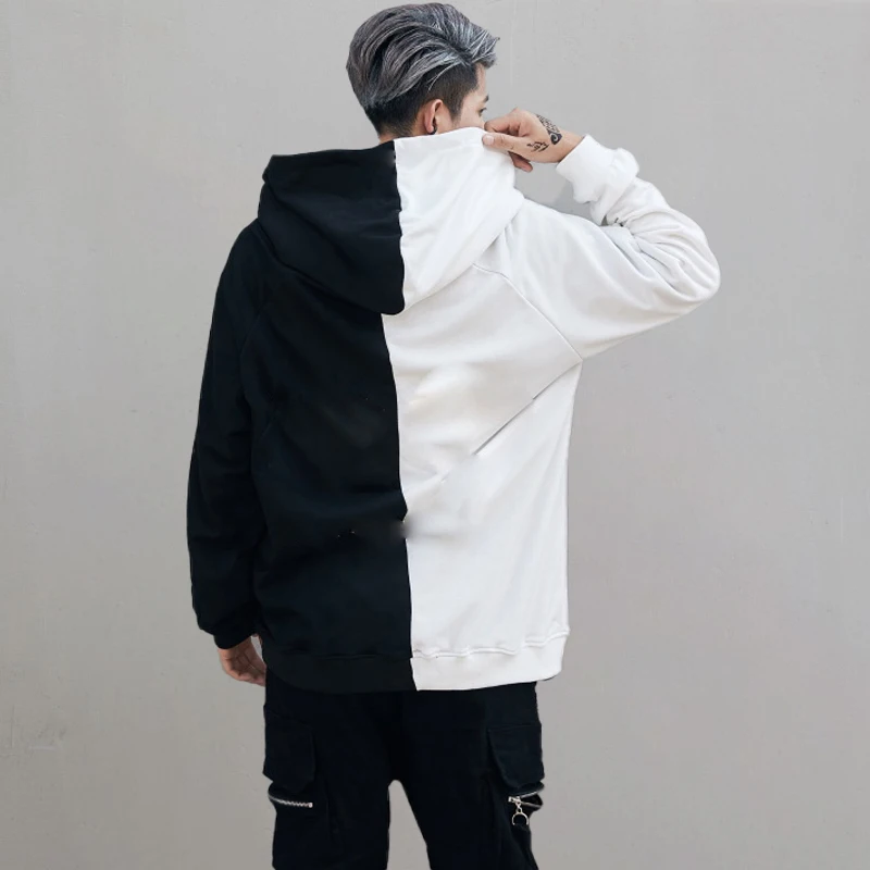 Толстовка мужская с длинным рукавом, модная половинчатая черная бел...