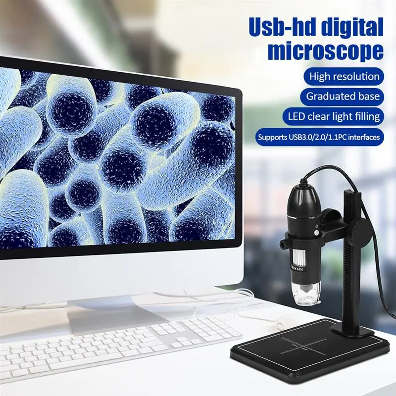 Цифровой микроскоп HD 1600X, электронный микроскоп с 8 светодисветодиодный, 2 МП, с подъемной стойкой, с увеличением X4 и USB, для MAC, Android, ПК