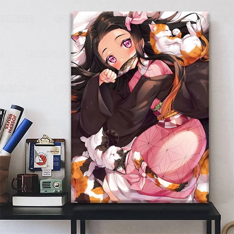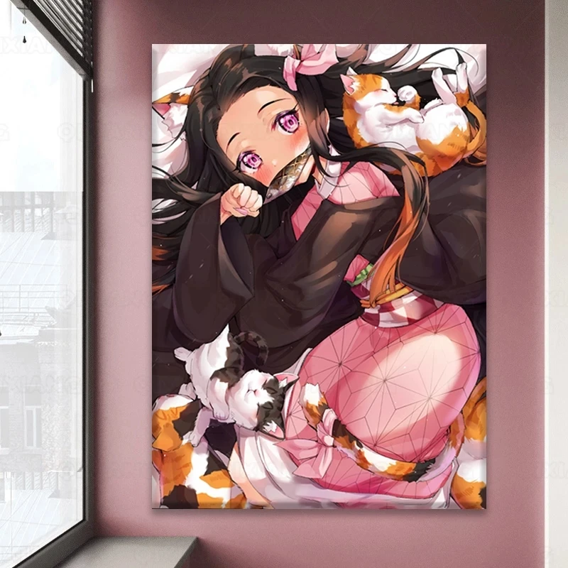 Плакат на холсте с японским аниме рассекающий демонов: киметасу no Yaiba Kamado Nezuko, для гостиной, домашний декор, фоновая стена для дивана