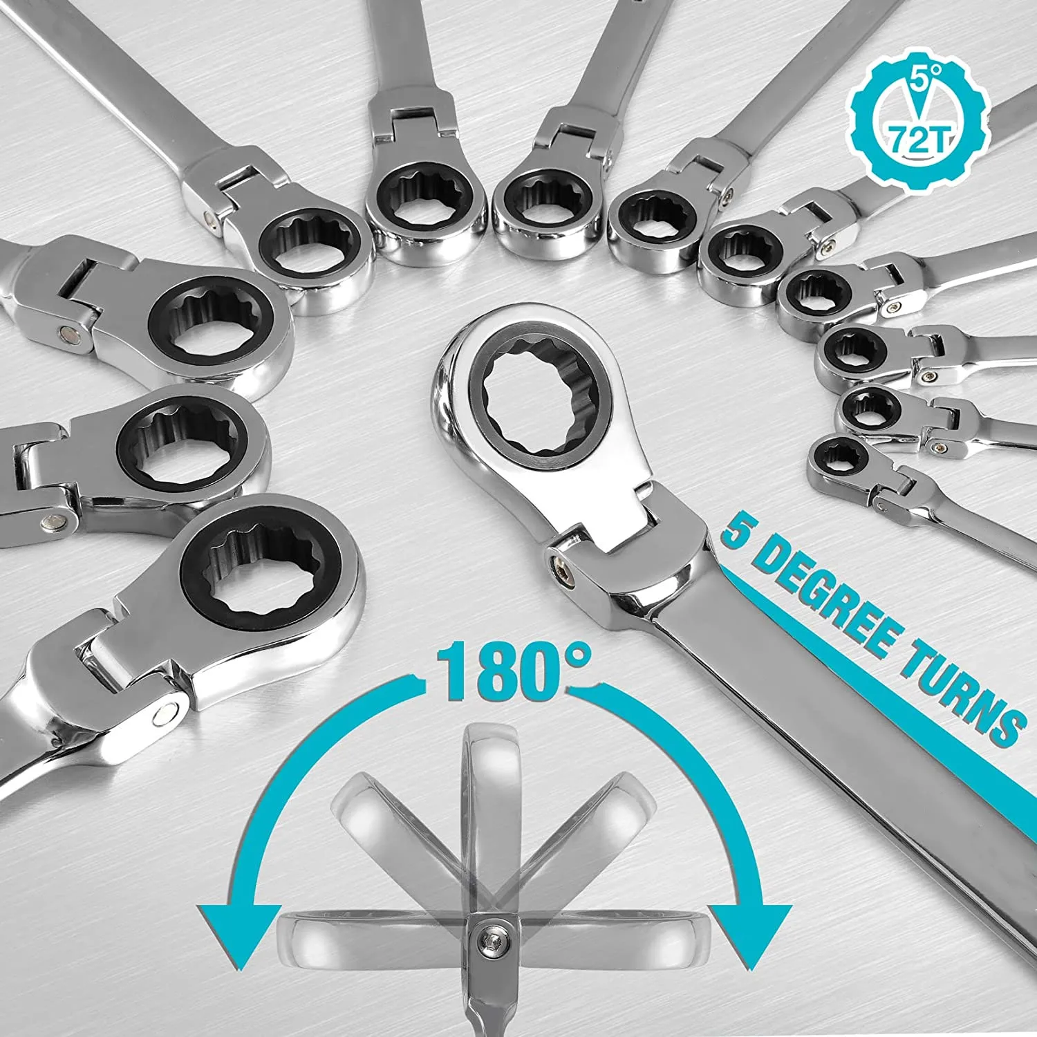 Набор гаечных ключей WOZOBUY с трещоткой и гибкой головкой, 6-22 мм