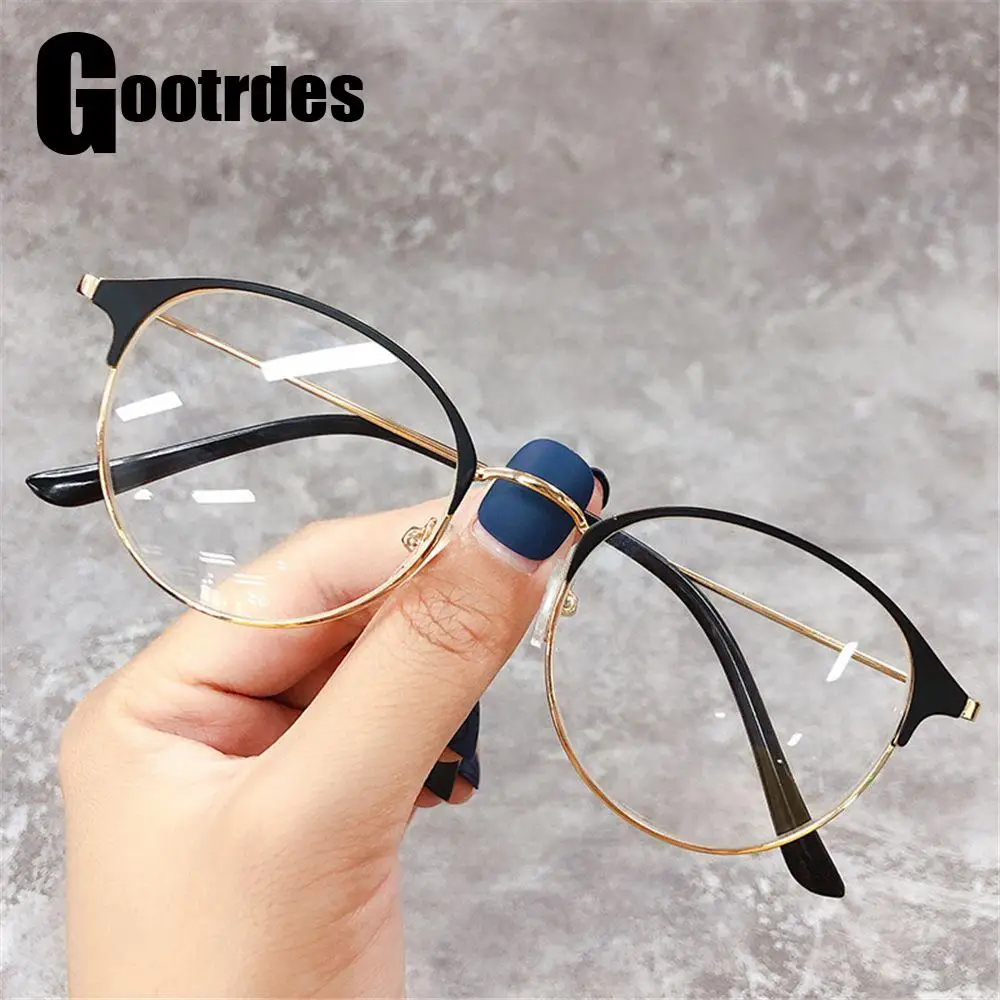 Очки для близорукости в круглой металлической оправе-1,0 -4,0