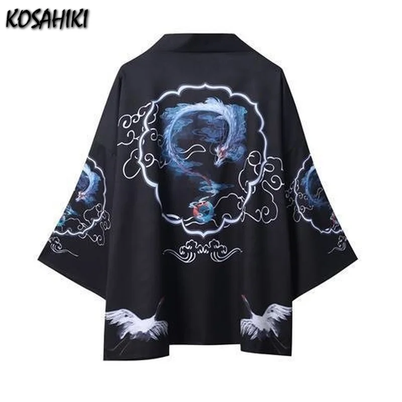 Кимоно в стиле Харадзюку для мужчин и женщин, повседневный японский кардиган с принтом дракона, рубашка для косплея, юката, лето 2022
