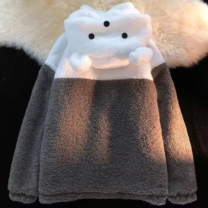 Ретро кавайная бархатная толстовка из овечьей шерсти в стиле коллед...