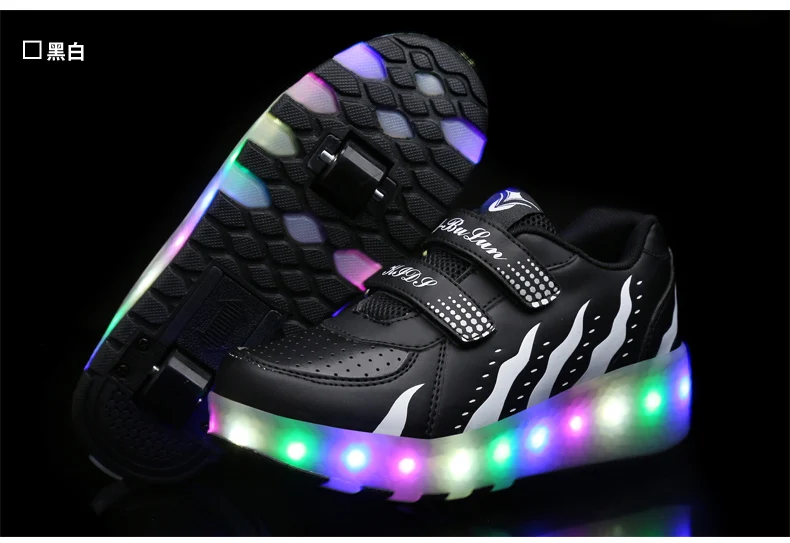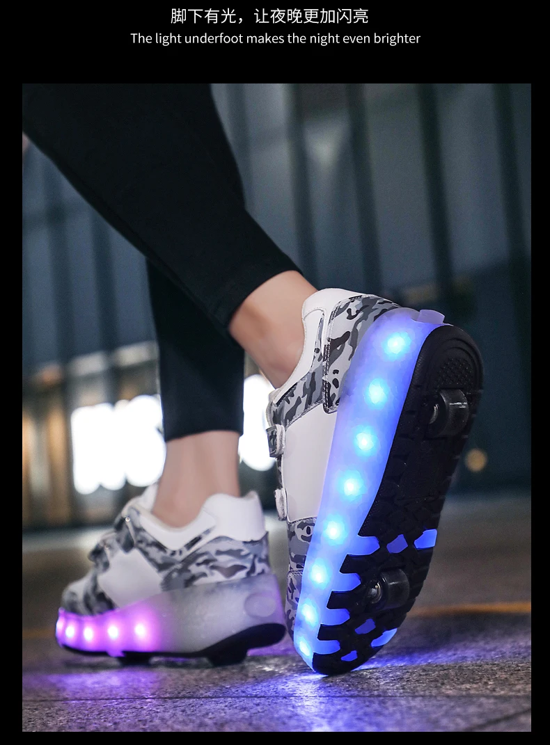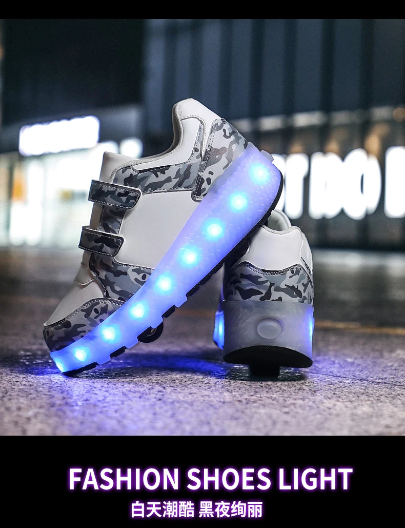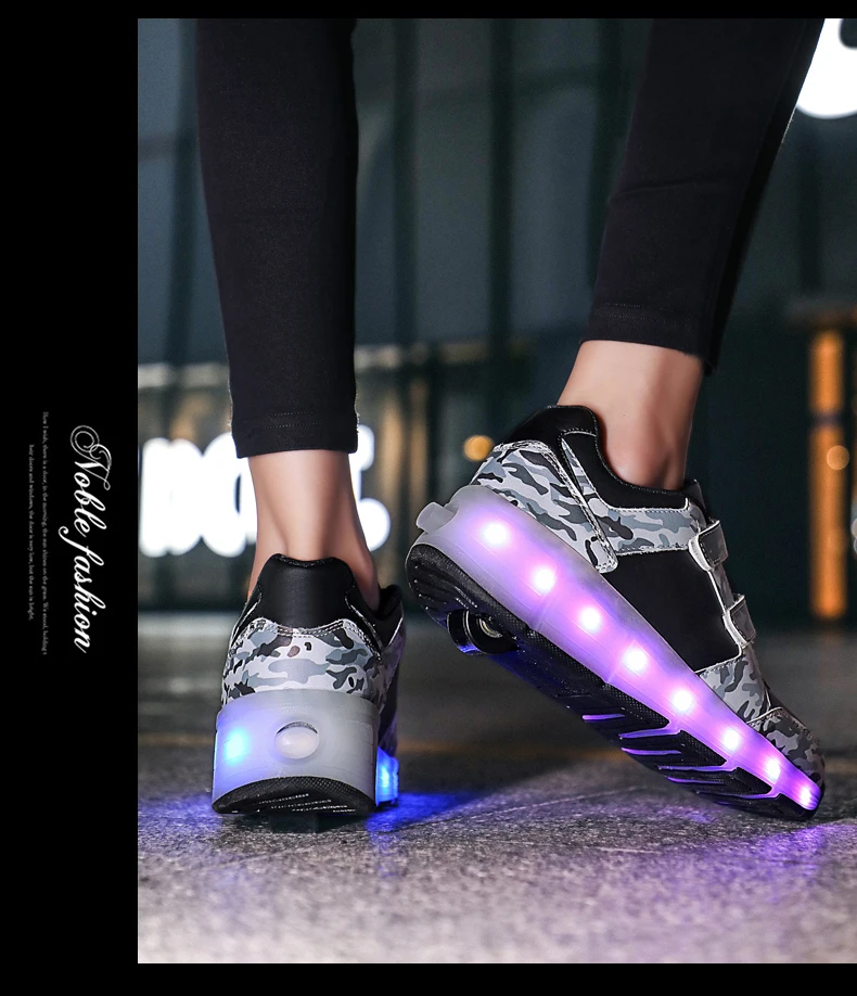 Детские светящиеся кроссовки с двумя колесиками, легкая обувь для р...