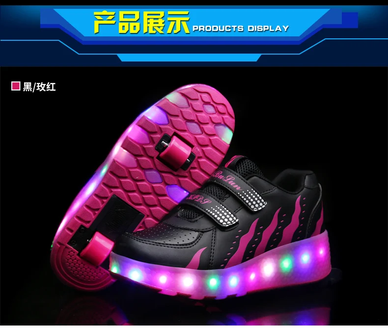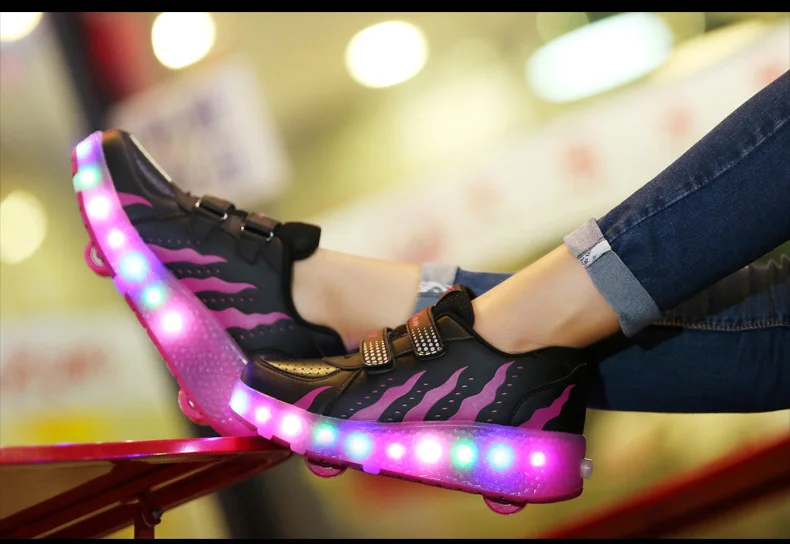 Детские светящиеся кроссовки на двух колесах Heelys Розовый Светодиодный светильник, детская обувь для роликовых коньков, светодиодная обувь для мальчиков и девочек с USB-зарядкой