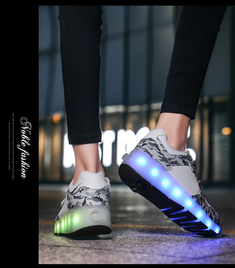Детские светящиеся кроссовки Heelys, дизайнерские туфли с USB-заряд...