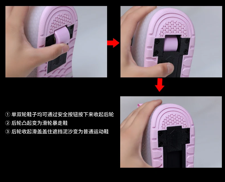 Детские светящиеся кроссовки с двумя колесиками, золотистые Розовый...