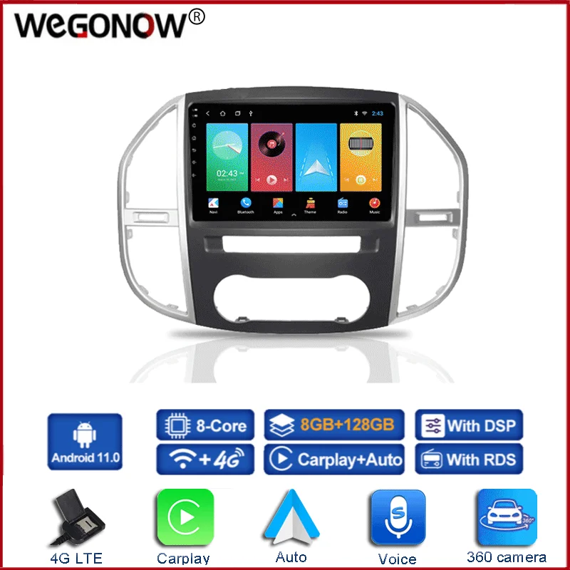 Автомобильный радиоприемник Carplay Android 11, 720P, 9 дюймов, 6 ГБ + 128 Гб, мультимедийное видео, 4G LTE, стерео аудио для Mercedes Benz W447 Vito 3 2014-2020