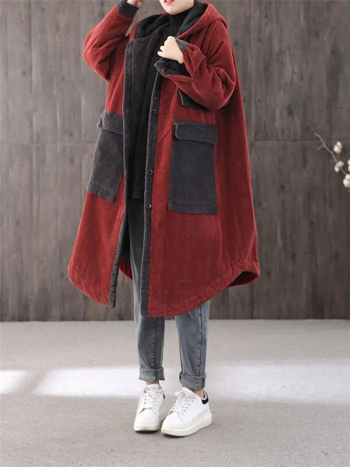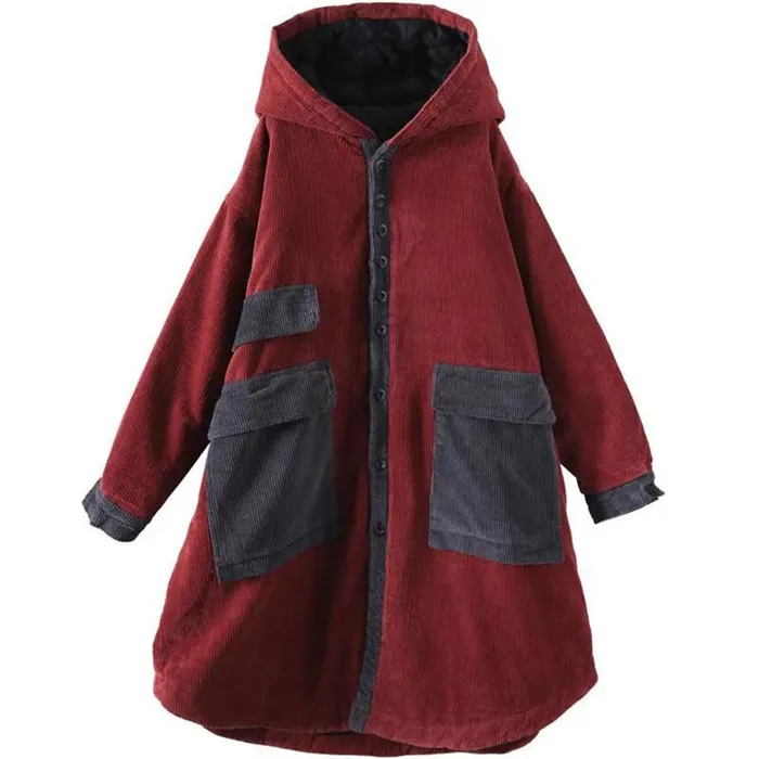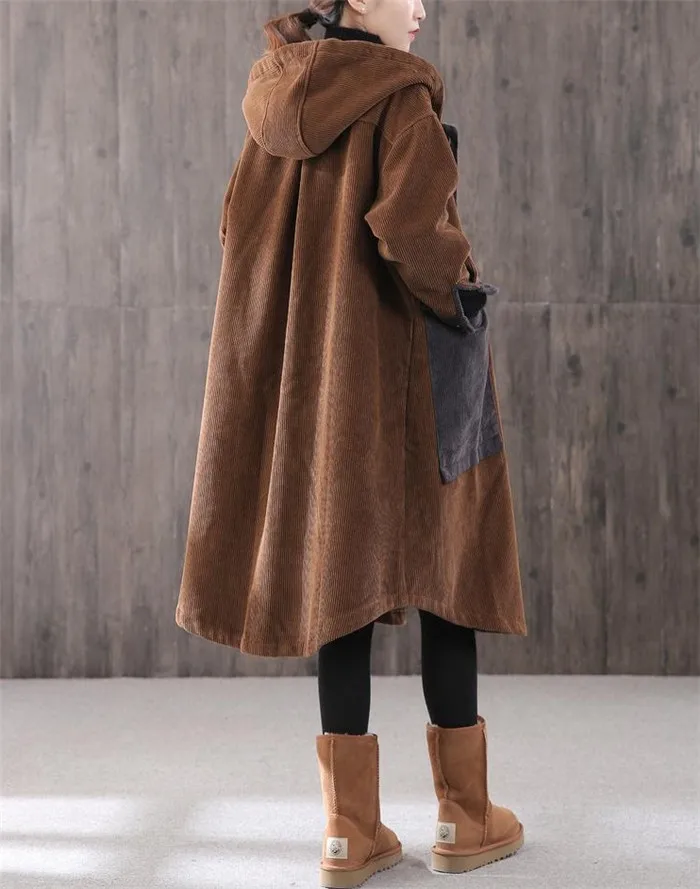 Вельветовое плотное пальто с капюшоном и большими карманами, куртки с хлопковой подкладкой, женское осенне-зимнее пальто, новинка 2021, Свободное пальто оверсайз средней длины
