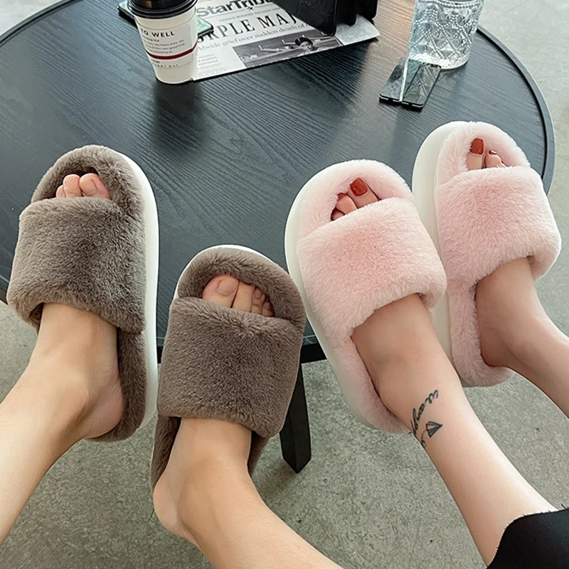 Новинка 2022, пушистые меховые домашние женские тапочки на толстой платформе, Зимние теплые плюшевые сланцы, Нескользящие шлепанцы, обувь для улицы и помещений