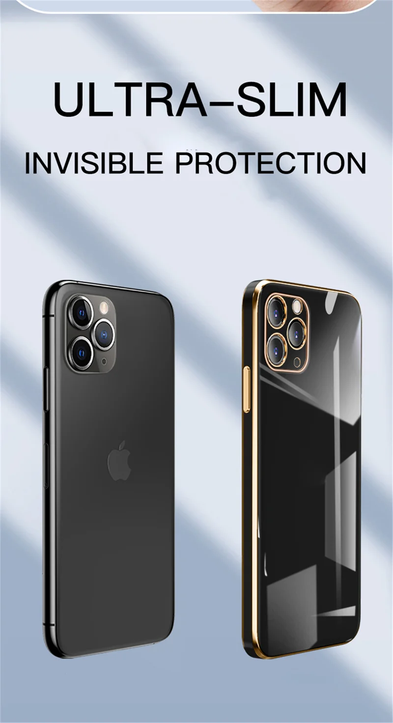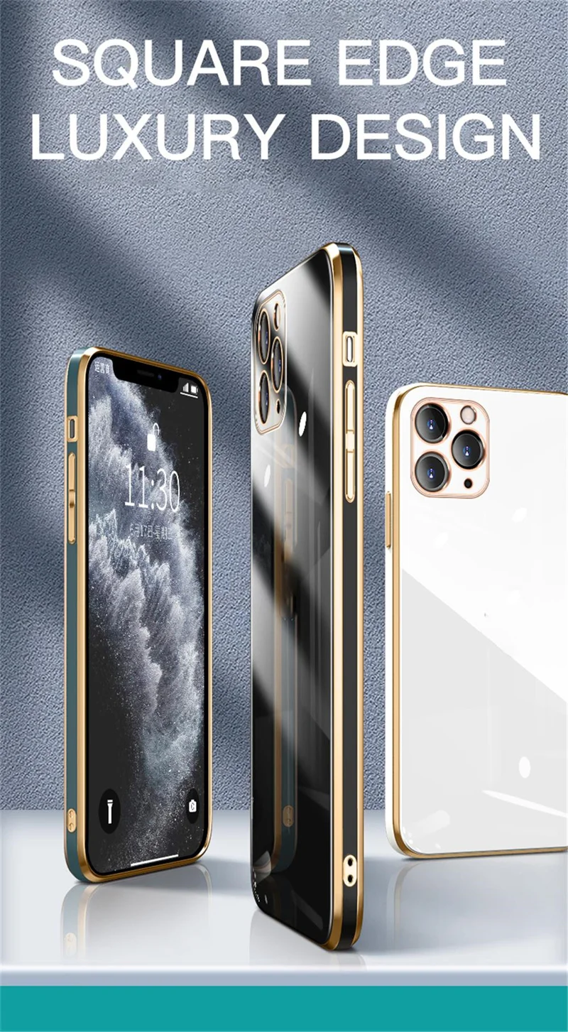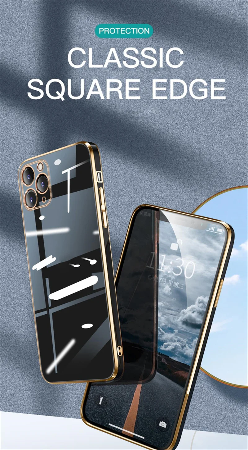 Роскошный мягкий силиконовый чехол 6D с квадратной рамкой для iPhone 11 12 13 Pro Max Mini XR X XS 7 8 Plus SE 2020 противоударный чехол из ТПУ