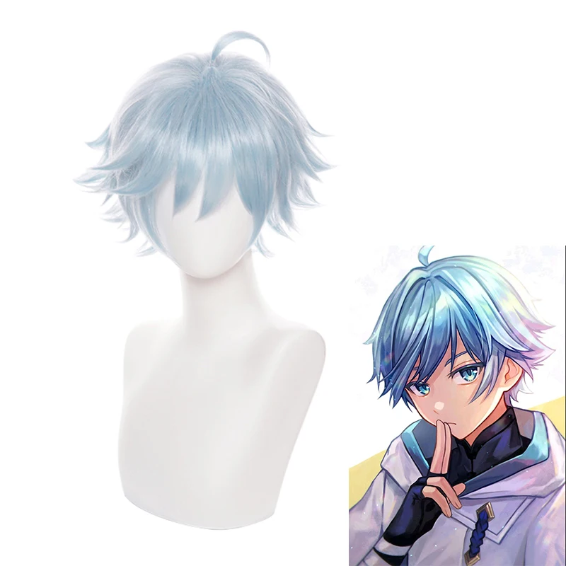 Парик для косплея по мотивам аниме Genshin Impact Chongyun, светло-голубой, с короткими волосами, синтетические волосы, Детская модель + парик, шапочка