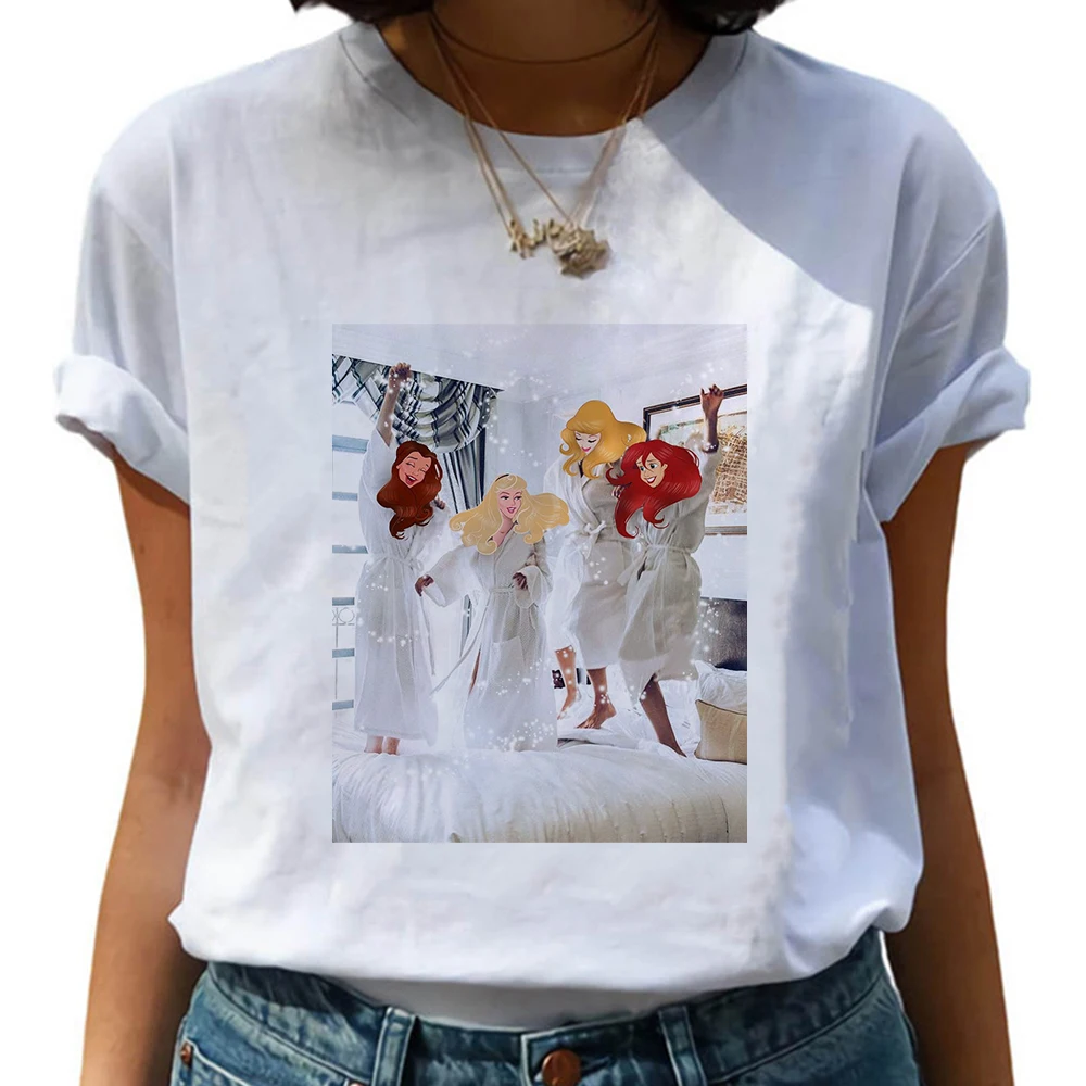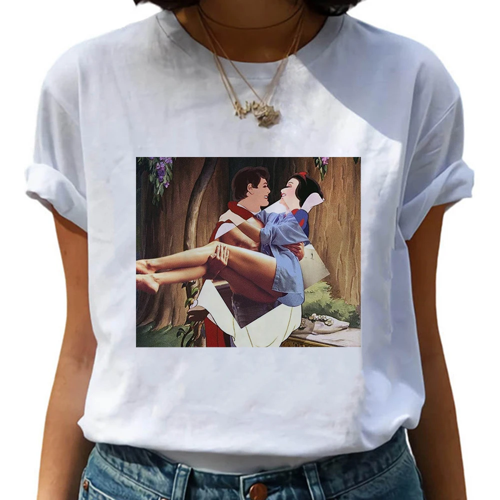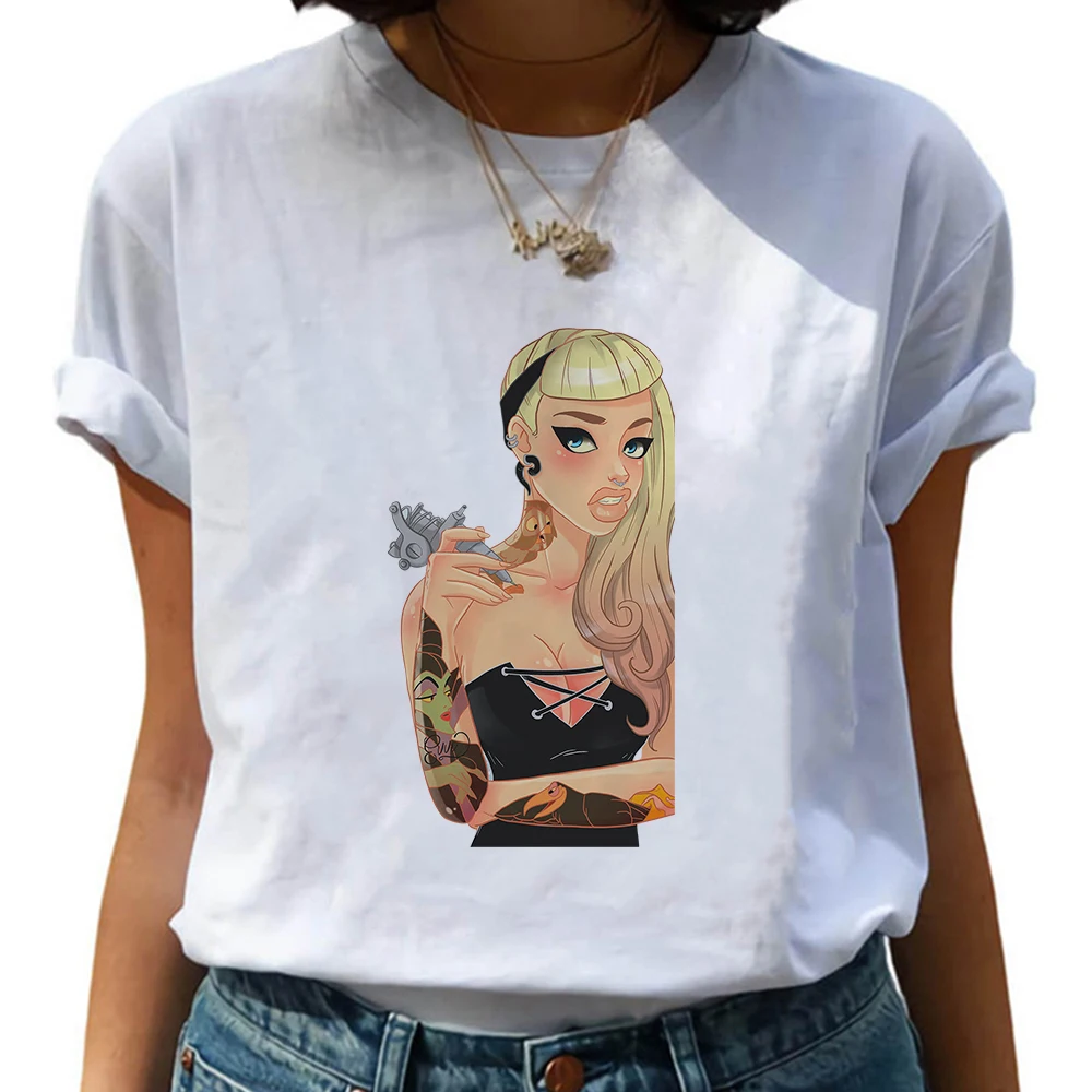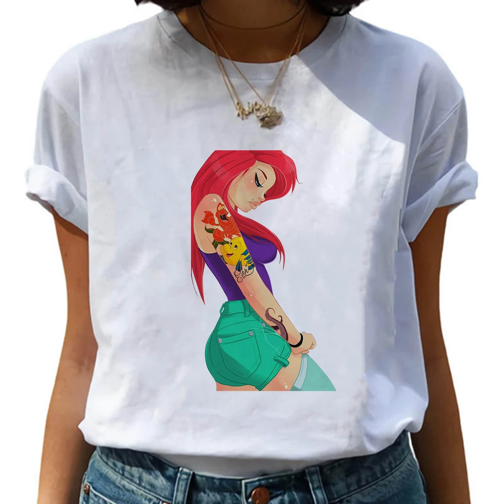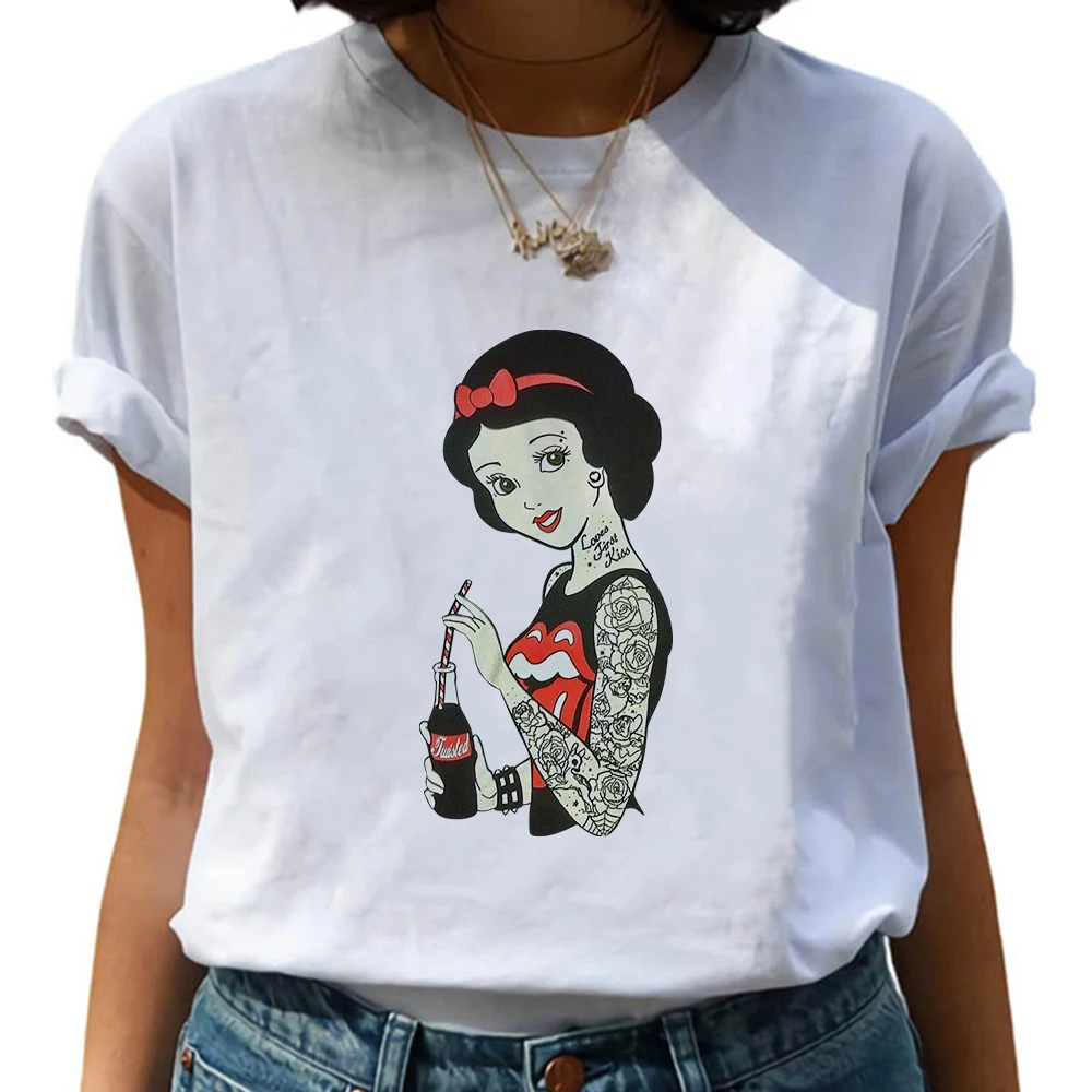 Женские футболки с татуировками в стиле диснеевских принцесс, белая...