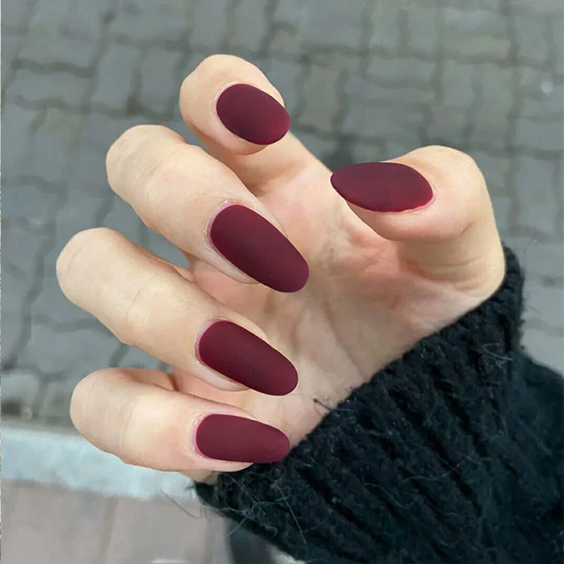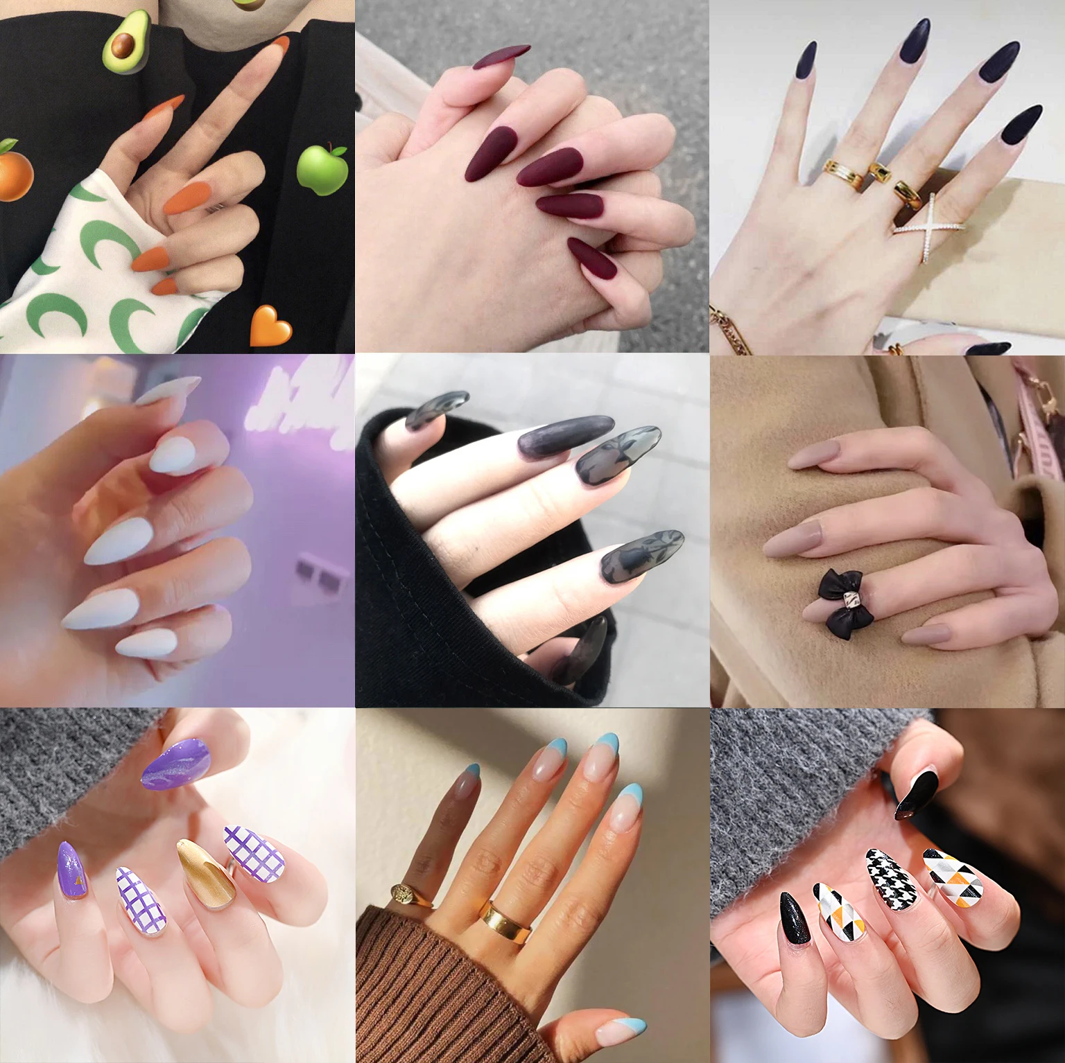 24 шт.компл. матовые однотонные длинные поддельные ногти в форме миндаля съемные Многоразовые цветные ed глянцевые накладные ногти с клеем, стикер