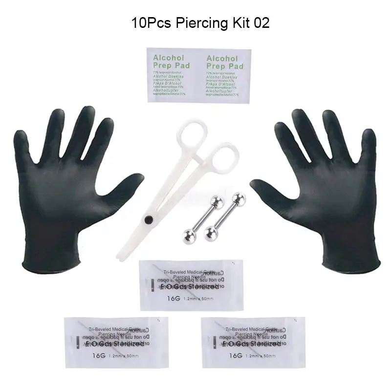 Совершенно новый и высокое качество. Набор для пирсинга включает в себя все необходимое для пирсинга тела. Профессиональный набор для пирсинга тела. 16 г и 14 г пирсинг. Материал пирсинга: нержавеющая сталь 316L хирургического класса. Материал зажимов для пирсинга: пластик. Размер: как показано на картинке.10 шт. комплект для пирсинга: посылка в комплекте: