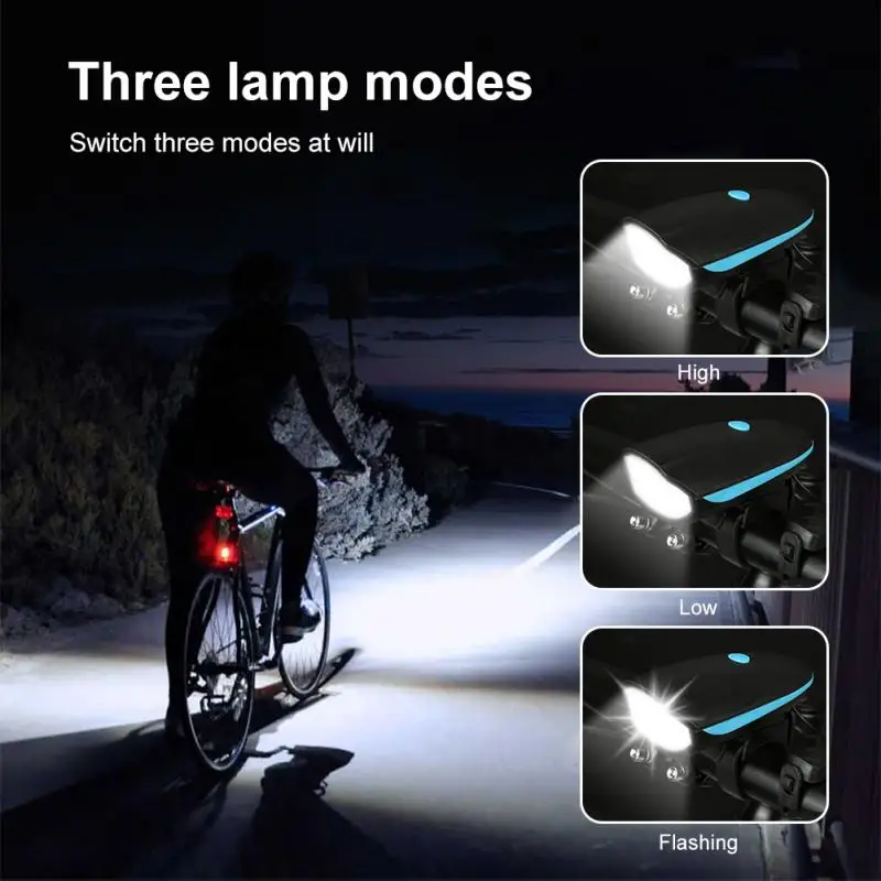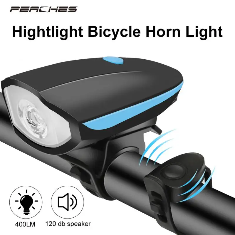 Фонарь велосипесветильник ный передний с клаксоном, зарядка через USB